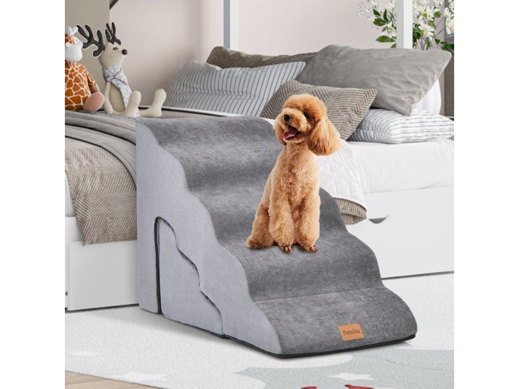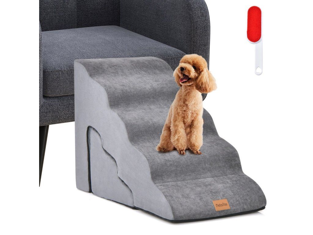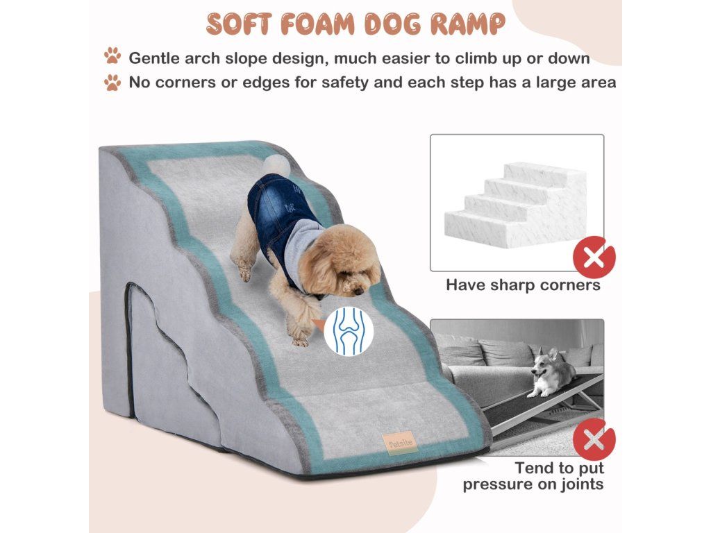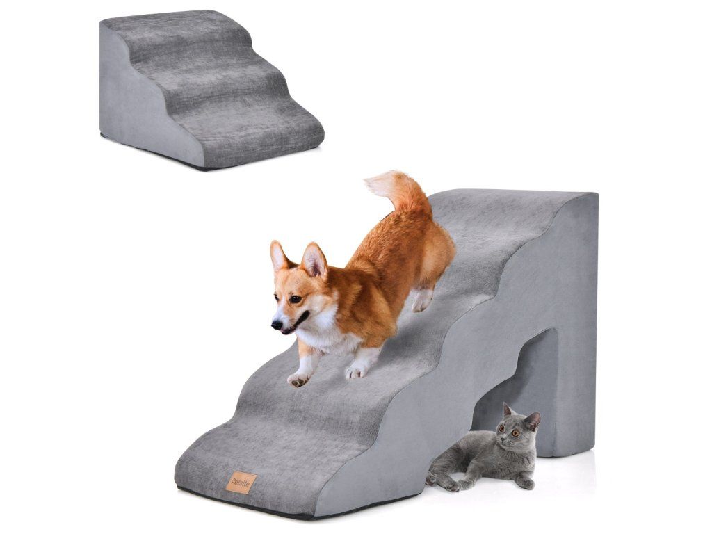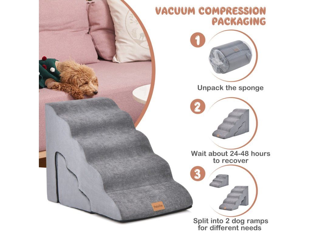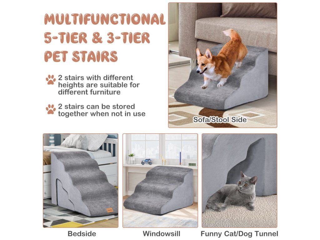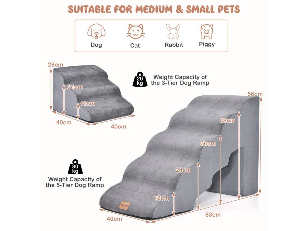 22 Inches and 11 Inches Foam Pet Stairs Set with 5-Tier and 3-Tier Dog Ramps-Gray