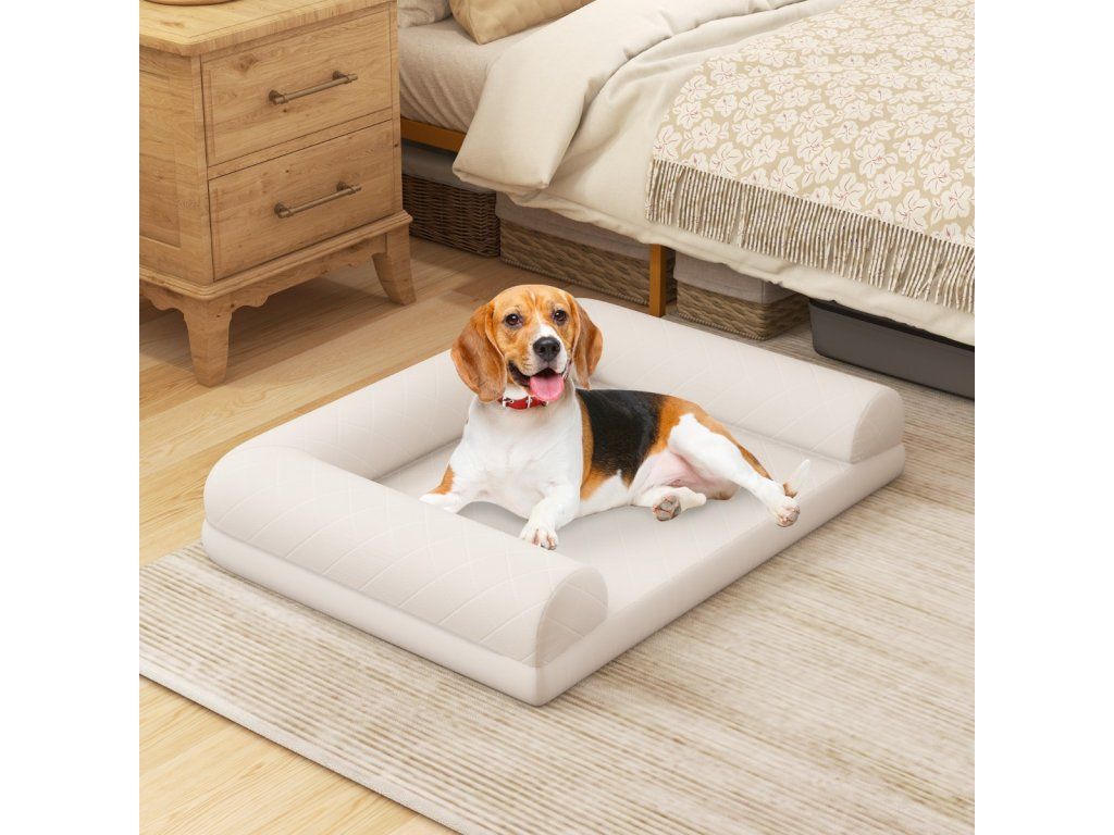3-Sided Edge Foam Dog Bed with Removable and Washable Cover, Dog Kennel for Medium and Small Dogs Beige