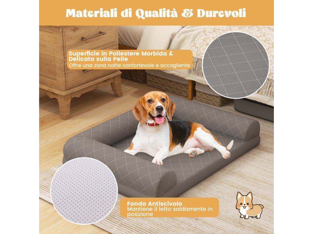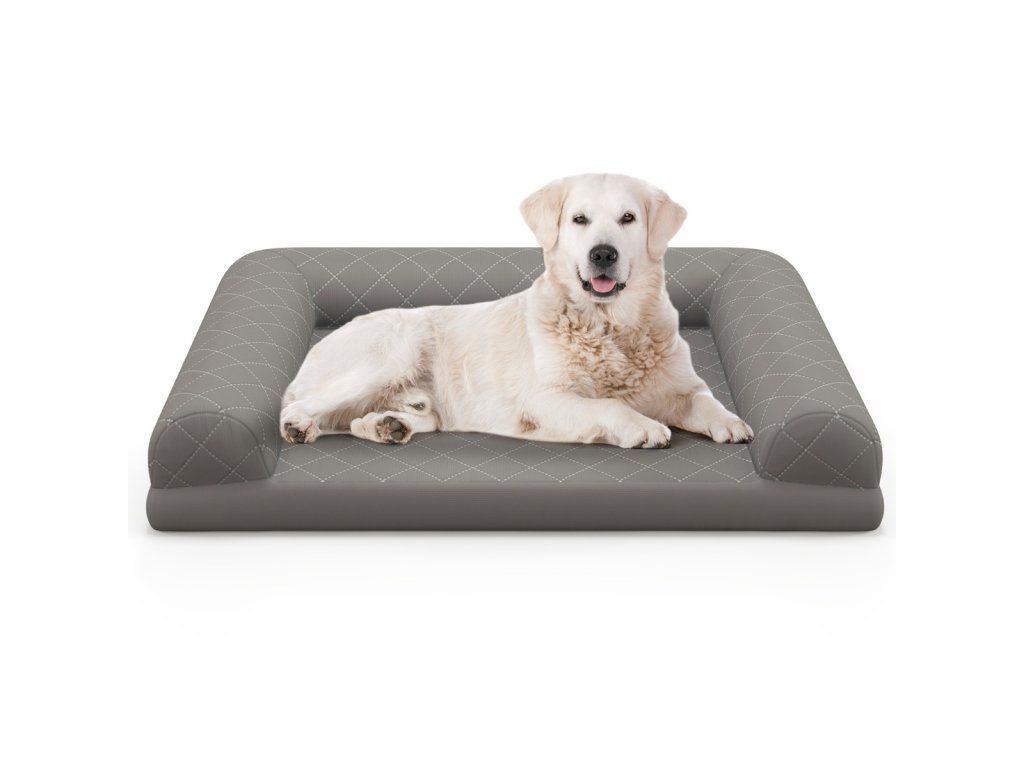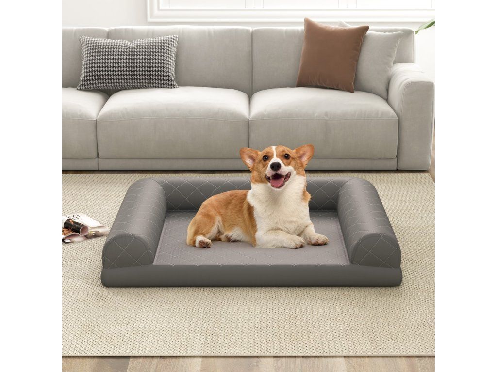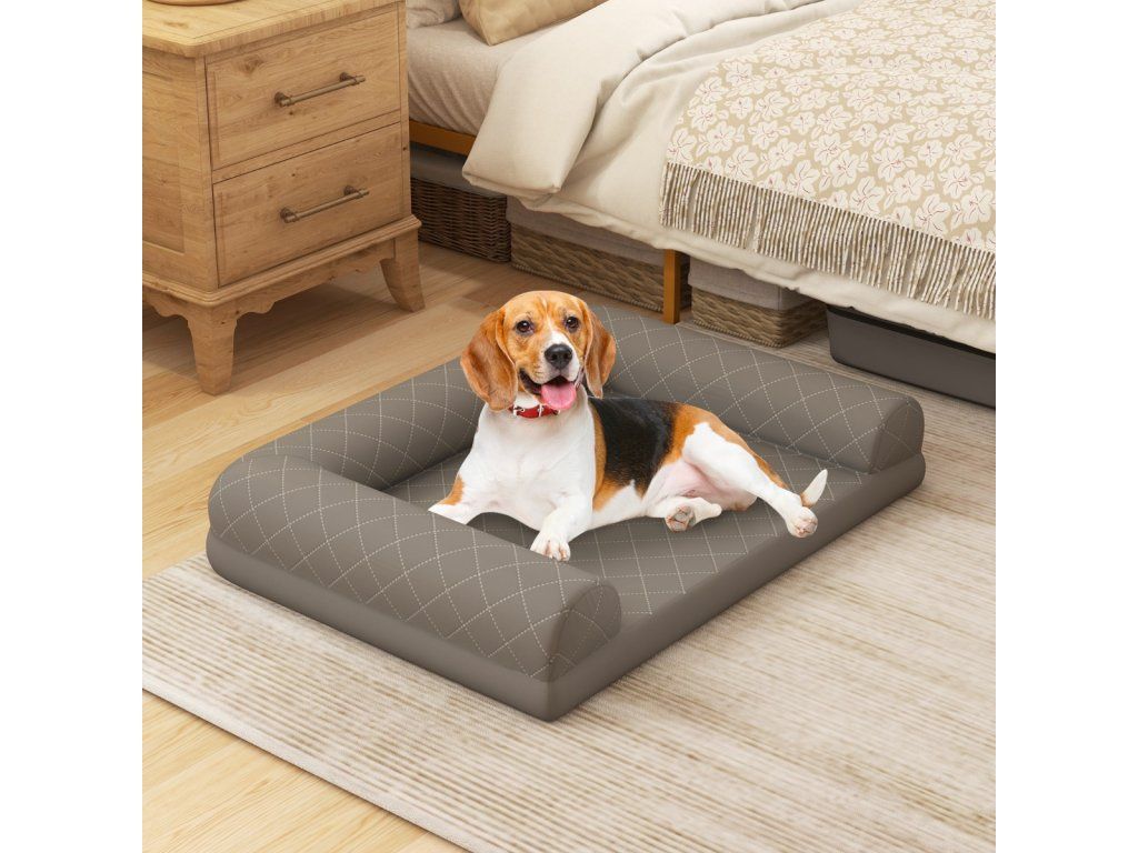 3-Sided Edge Foam Dog Bed with Removable and Washable Cover, Kennel for Medium and Small Dogs, Grey