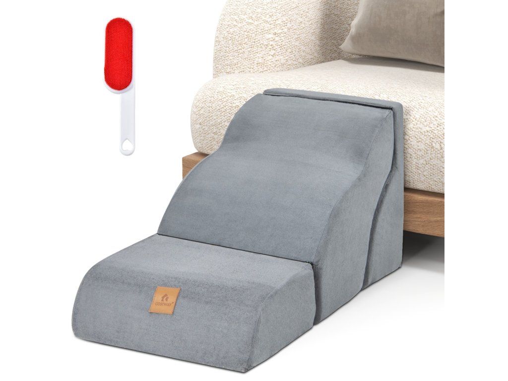 3-tier set of dog stairs made of foam with non-slip base pet stairs grey