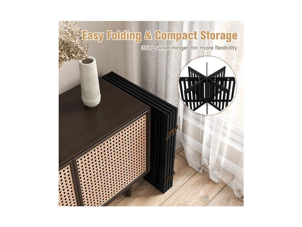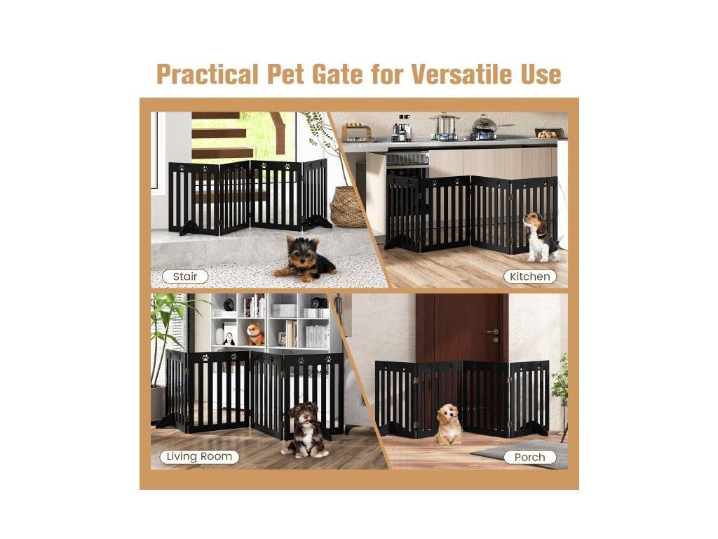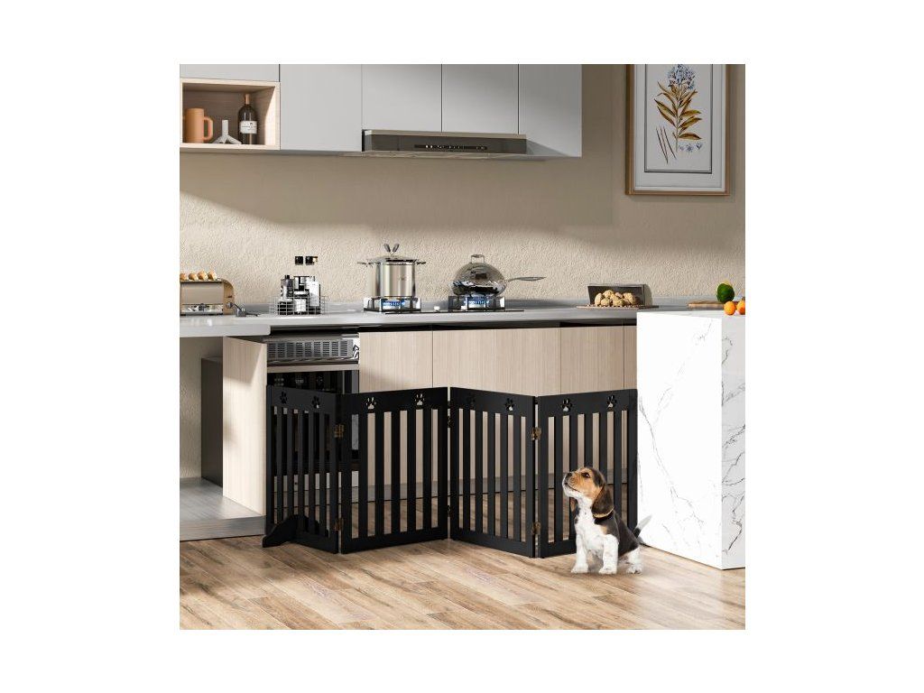 The 4-piece dog guard is perfect for home use! The MDF frame ensures stability, the lacquered surface is more durable. In addition, the two feet ensure that the whole remains stable and is removable for storage. The pet fence has scientific gaps to avoid crushing. In addition, the dog guard has 360° rotating hinges that facilitate flexible use and compact storage. Non-slip foot pads are offered to protect the floor. Overall, the foldable dog gate is suitable for porch, kitchen, stairs, etc. Attributes: Strong and Durable Frame: The dog gate is reliable as it is made of high quality MDF with high strength. Also, the pet fence features a painted design to ensure good water and wear resistance. Detachable Support Feet: The dog fence is equipped with 2 detachable feet to keep the whole thing balanced. Even if your pets accidentally bump into it, the freestanding dog gate can stand stably and won't fall over. More protective details: The dog fence consists of 4 panels, each with 5 wide slats. It features scientific gaps of 3.5cm wide, so pets won't get trapped and enjoy perfect protection. Easy to fold and store: 360° swivel hinges make the dog fence more flexible, which allows for different shapes and free placement. In addition, the collapsible design offers a reasonable size for compact storage. Versatile Application: If necessary, the dog gate can be used on stairs, doorways, porches, in the kitchen, etc. The non-slip foot pads are good for preventing scratches on the floor. Besides, the pet fence looks adorable and can also be used as a decoration. Characteristics: The sturdy fins are painted for easy cleaning and better wear resistance 360° rotating hinges for more flexibility and more different shapes Easy folding and compact storage in every corner Removable feet provide better stability Non-slip foot pads prevent scratches on the floor Proper spacing protects pets' paws from being pinched Perfect for small dogs and other pets Practical pet gate for a variety of uses, including on the stairs, in the kitchen, in the bedroom or on the porch Easy installation guided by a detailed manualBuďte první, kdo napíše příspěvek k této položce.