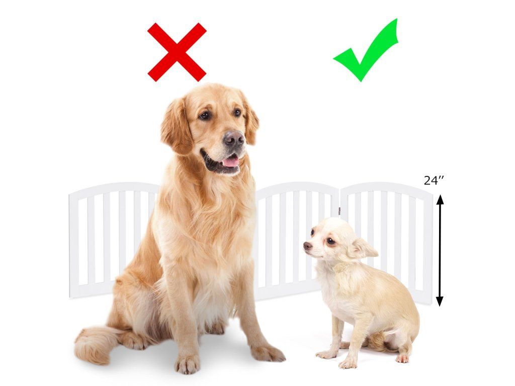 This practical dog fence keeps your little darlings away from dangers or unwanted areas. It consists of durable MDF wood with solid metal hinges, has an environmentally friendly NC lacquer coating and has a long service life. The simple folding design allows the fence to be adjusted and safely transported and stored away after use. Attributes:Premium Material: The individual grid elements are made of high-quality MDF and are connected to each other with solid metal hinges. The surface is coated with an environmentally friendly NC paint, which ensures a smooth surface and additional protection against corrosion.Protect Your Pets: The pet gate is specially designed to isolate your pets from potential danger spots, effectively keeping them away from stairways, doorways and unwanted areas.Hinged Design: The four components of the fence are connected by a rotary hinge, which allows for customization as needed. They can be folded up practically after use and stowed away to save space.Versatile: Thanks to its simple and stylish design, this grid can be integrated into a wide variety of decoration styles and is therefore also suitable for different room types (Note: only suitable for small pets).Easy to assemble: thanks to the complete set of accessories and the detailed instructions, the grid can be easily assembled by one person in no time at all, while the smooth surfaces ensure easy and uncomplicated cleaning.Buďte první, kdo napíše příspěvek k této položce.