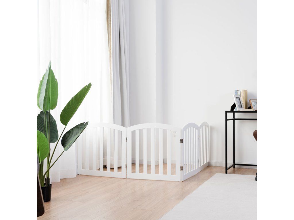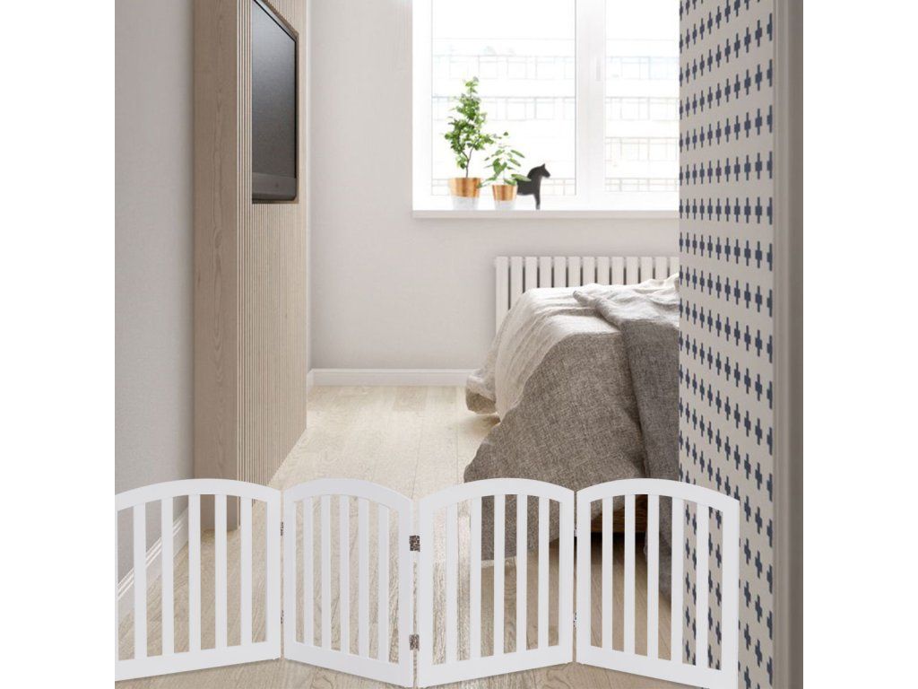 4-piece safety gate for dogs, foldable, free-standing safety gate, wood, white