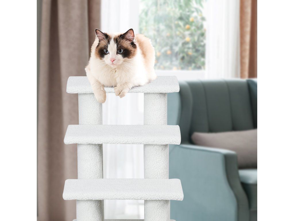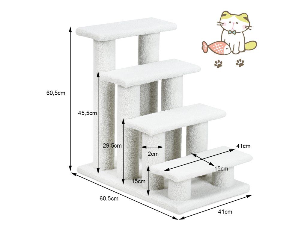 Our 4-step pet stairs ramp is designed for small as well as aging pets that have mobility problems! We know you care deeply about your furry friends and it's painful to see them struggle to reach the window or get on and off their favorite couch due to physical or health disadvantages. With the 4-step stairs, you can enjoy watching your pet access high places with ease, whether it is the bed, couch, or other furniture. Besides, covered with soft berber fleece, the pet stairs provides a comfortable space for your pets to climb, play, relax or sleep on. The thick and durable engineered wood ensures strong stability and sturdiness for long-lasting use. And the pet stairs ramp can stand a weight of 99 lbs without any wobbliness. Warm tip: For stability and safety, it is recommended to place the pet stairs close to the sofa or bed, leaving no gap. Bullet Point: Great Joy & Comfort to Pets: All kittens are crazy about climbing and sitting in high places. The the 60.96cm high 4-step pet stairs with 8 posts is perfect to promote your cat's natural desire to scratch, climb and play while saving your furniture from destruction. Besides, each platform and hole is covered with plush berber fleece for added comfort. Helpful & Practical Pet Stairs: When your dogs or cats get older, ailing, or simply need help due to their body size, this 4-step pet stairs makes it convenient for your fluffy friends to get to difficult-to-reach areas, like high beds or sofas. With the pet stairs, your dogs or cats can easily go up to high places and comfortably lay on it. Sturdy & Durable Construction: Made of high quality and thick engineered wood boards, this pet stairs ramp ensures great stability for long-lasting use and is strong enough to stand a weight of 99 lbs. Moreover, the soft and warm berber fleece covering is wear-resistant and non-toxic for pets to use. Lightweight & Portable Design: Featuring a lightweight design, this 4-step pet stairs ramp is easy for you to move and carry to any ideal place. Moreover, this compact and comfortable pet stairs ramp provides a perfect place for your pets to play, climb, relax or sleep on it without taking up plenty of space. Easy to Assemble & Dimensions: All the necessary parts, hardware and instruction are included in the package. It is very easy to assemble the 4-step pet stairs. And you can complete it in a short time by following the instructions. The overall dimension is 60.96cm x 40.64cm x 60.96cm (L x W x H), and each step measures 40.64cm x 16.51cm(L x W). Features: 4-step stairs with 8 posts for pets to scratch, climb and play on Plush Berber fleece covering provides a soft and gentle surface High quality engineered wood ensures stability and durability Attract cat's attention and save your furniture from destruction A cozy place for your pets to sleep, climb, relax and play Strong bearing capacity reaches up to 44.9kg Helpful for elderly, arthritic pets with mobility problems Portable, lightweight, and easy to move Easy to assemble with clear instructionBuďte první, kdo napíše příspěvek k této položce.