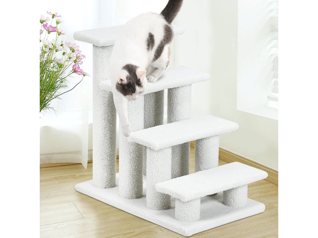 4-Step Pet Stairs with Portable Design for Cats and Dogs-White
