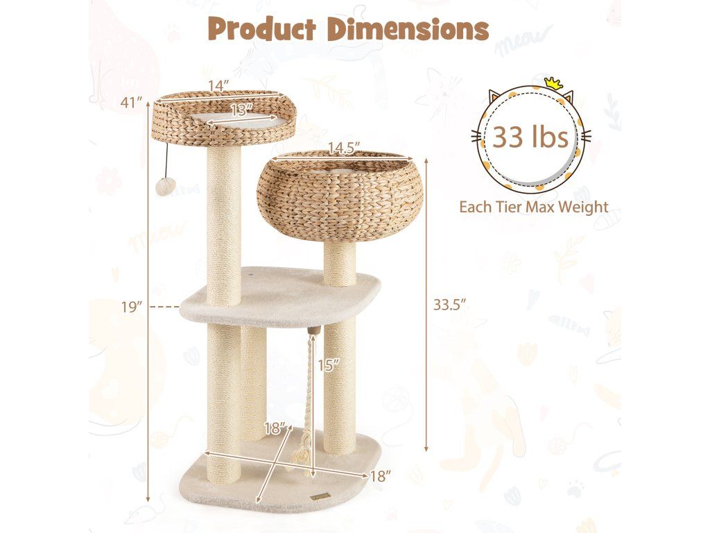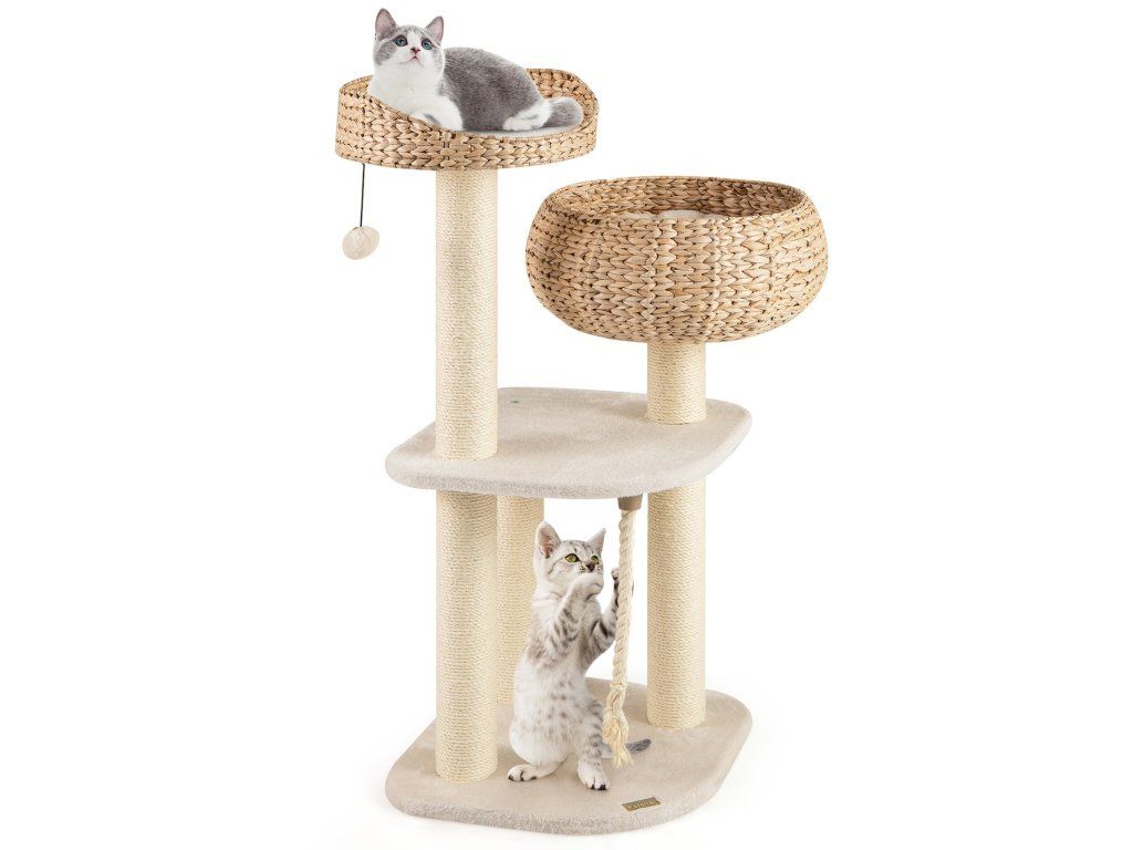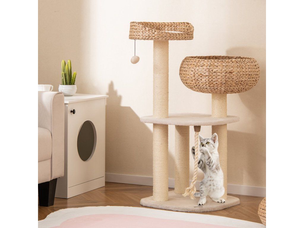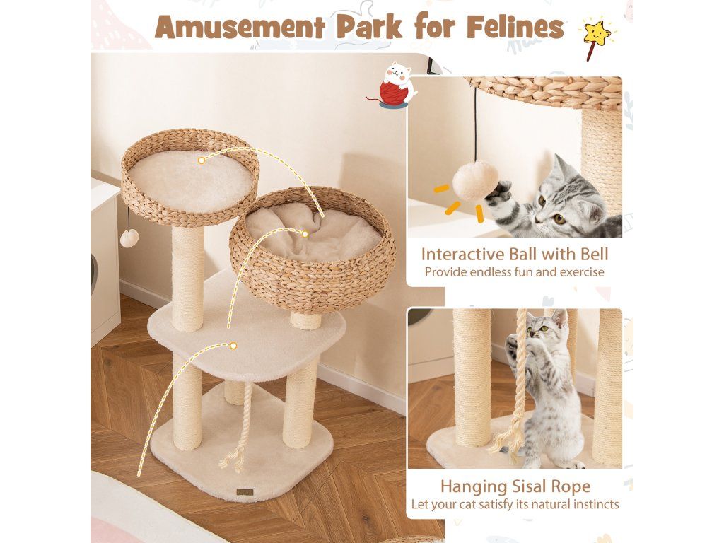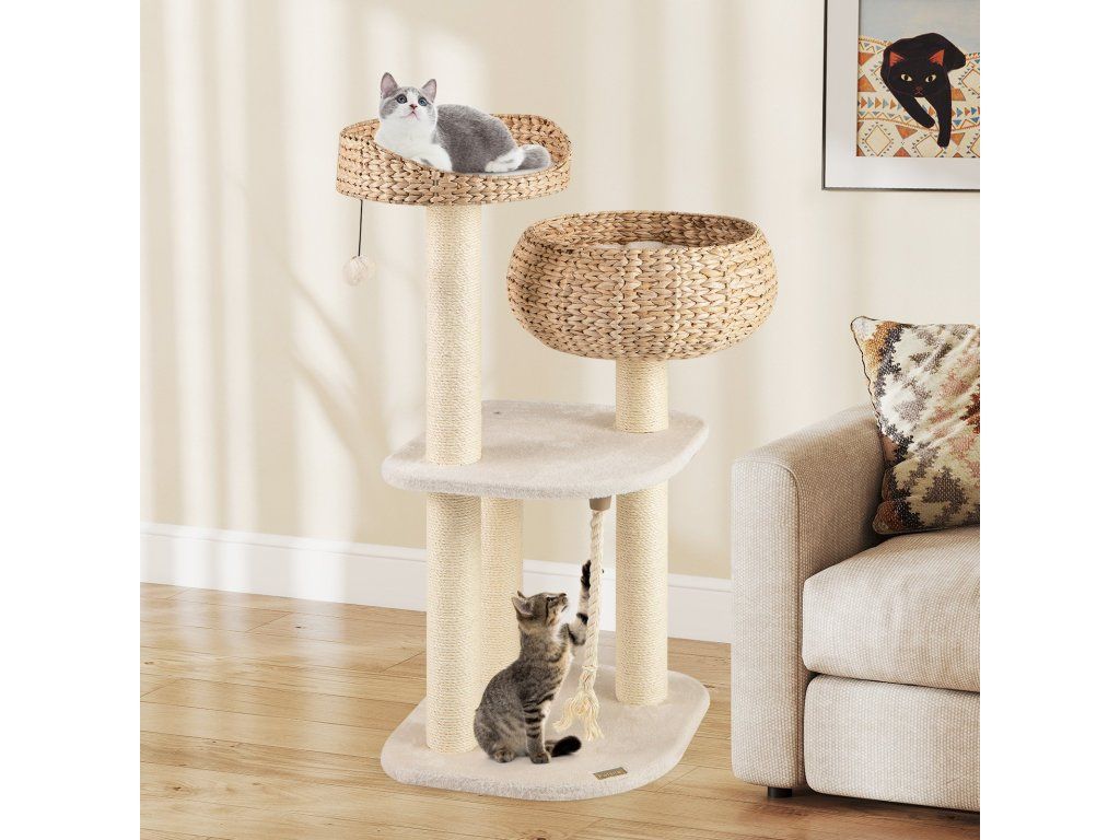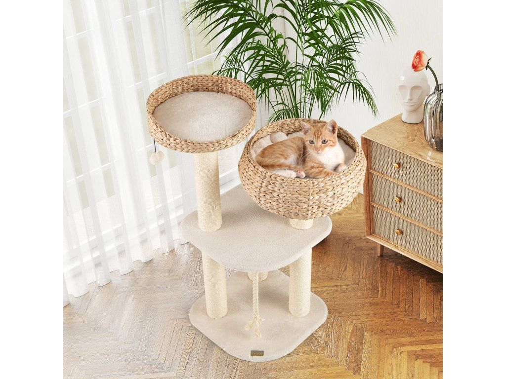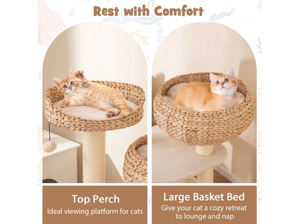 High rise basket beds provide lounger area for kitten With a hanging ball and rope for cats to play Soft cushion is detachable and washable for easy cleaning Sisal posts satisfy cats' scratching nature and protect your furniture Elegant design can perfectly blend into any room decor Nature material is durable and safe for cats Reinforced MDF enhance the overall stability and ensure cats' safety Easy to assemble with simple structure and clear instructionBuďte první, kdo napíše příspěvek k této položce.