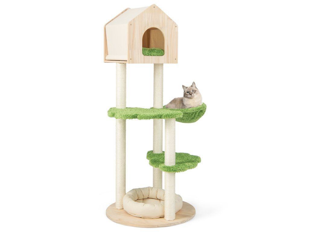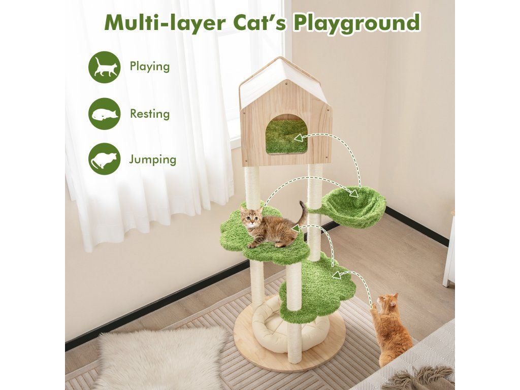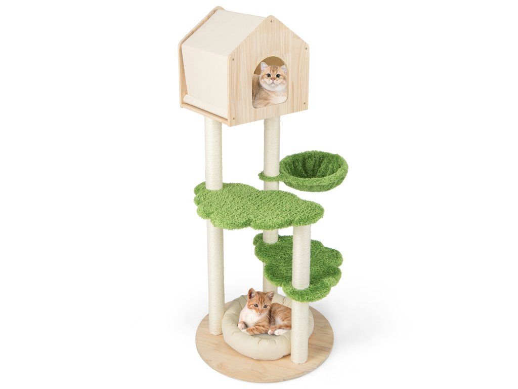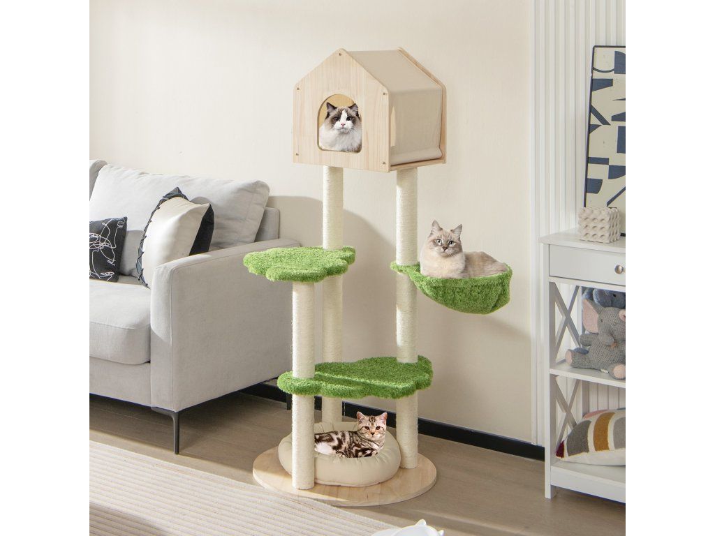 55 Inch Tall Cat Climbing Stand with Sisal Scratching Posts and Soft Cat Bed for Indoor Kittens-Green