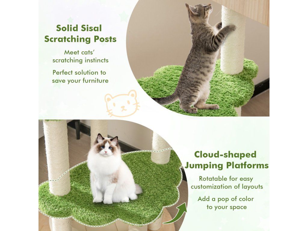 -Adopts a solid pine wood condo and base, sturdy and durable, not easy to crack-The top perch with a soft cushion provides a cozy and comfy hideaway-The cat hammock allows your cat to relax and enjoy a gentle sway-2 large platforms offer ample space for your cat to jump and perch-The bottom soft cat bed offers a plush area for them to curl up and nap-The sisal scratching posts allow kittens to release the scratching urge-The posts are covered by natural sisal ropes, safe, durable, pet-friendly-The polyester peach skin fabric provides a warm touch, pilling free, no shedding-The bottom thickened padded cushion with breathable twill fabric covering and ultra-soft sponge filling-With its stylish appearance and natural colors, can be a highlight for your homeBuďte první, kdo napíše příspěvek k této položce.