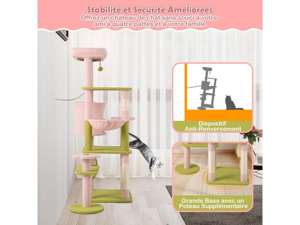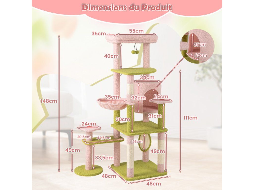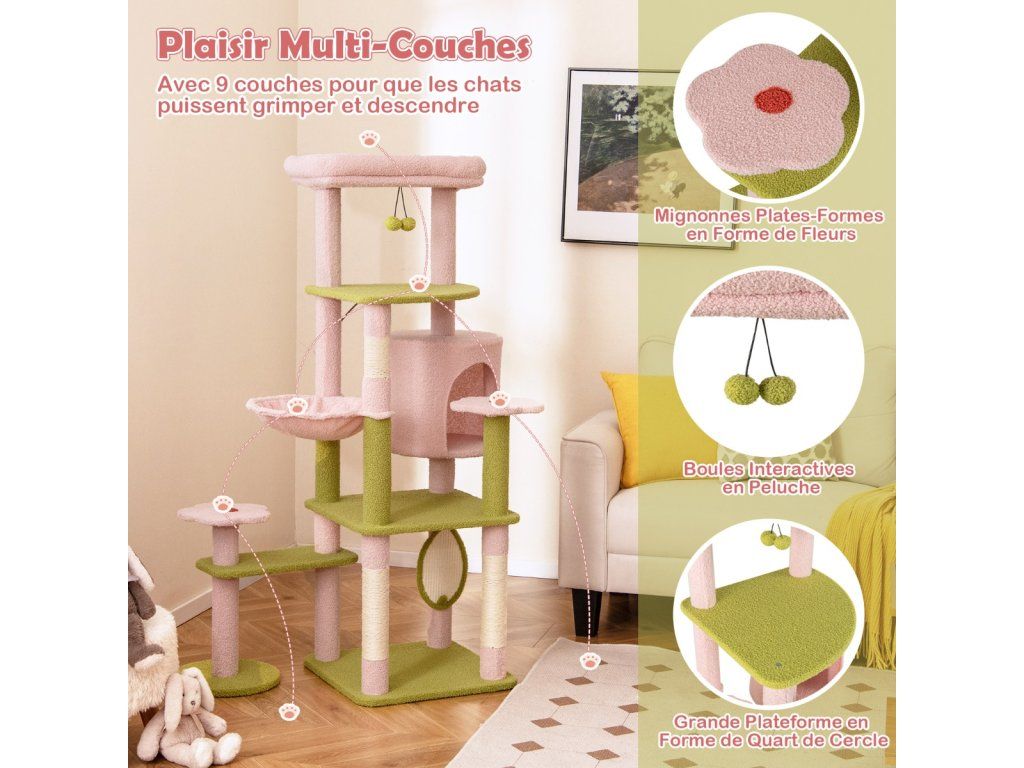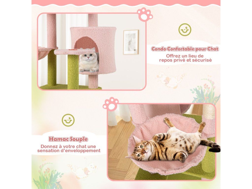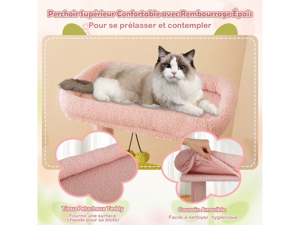 -Comes with a padded top perch for cats to lounge and observe their surroundings-The teddy plush fabric covering offers an ultra-soft and skin-friendly touch-Features a detachable cushion on the top, easy to clean, keep hygienic-Comes with a cozy cat condo, offer a private and secure resting spot-Includes a soft hammock, give your cat a wrapped feeling-Features scratching posts and board, allow cats to grind claws and release instincts-The scratching surfaces are made of natural sisal, resistant to scratch and wear-The anti-toppling device secures the tree on the wall for enhanced stability -Equipped with a large base and an additional post, not easy to wobble-Comes with cute flower-shaped platforms and a large quarter-circle platform-The interactive plush dangling balls spark curiosity and play for added funBuďte první, kdo napíše příspěvek k této položce.