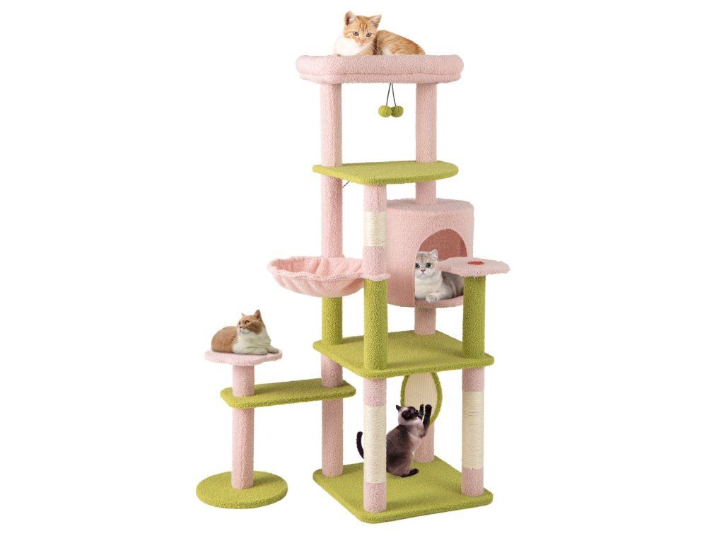 58 Inch Tall Multi-Level Cat Tree Aesthetic Floral Kitten Tower-Pink