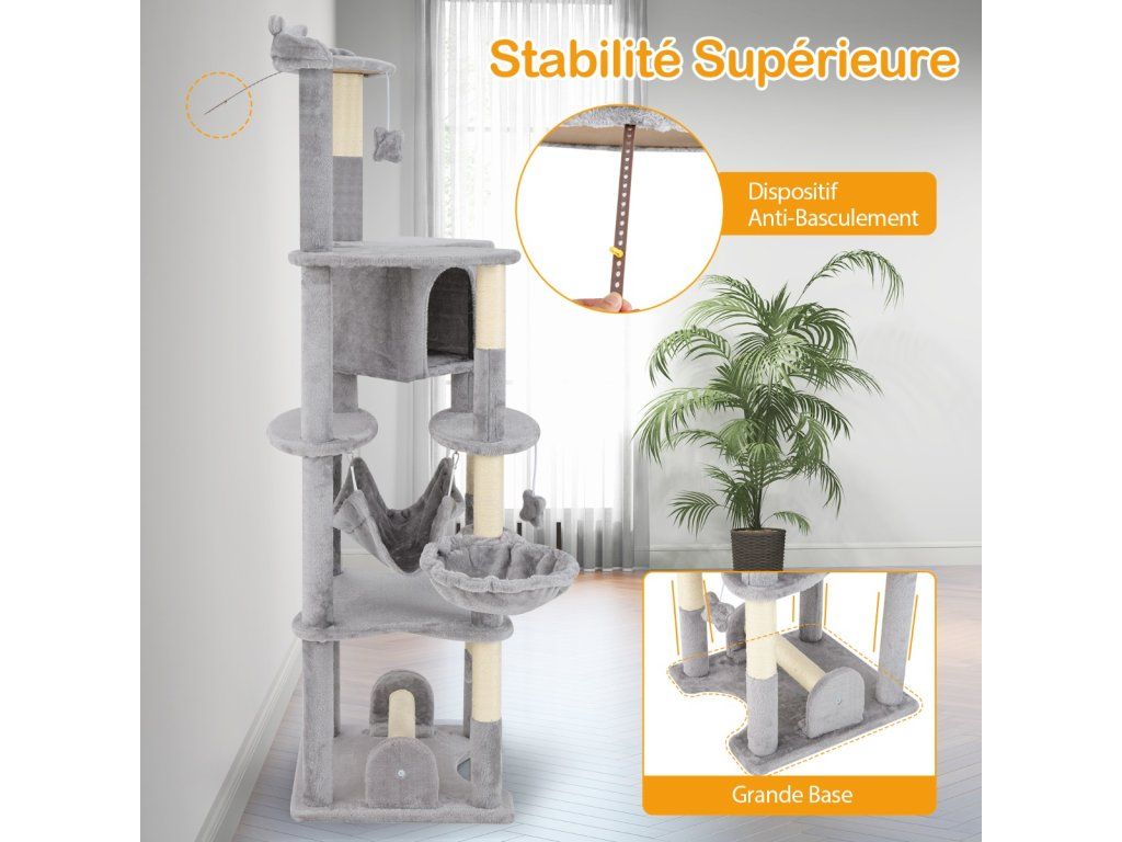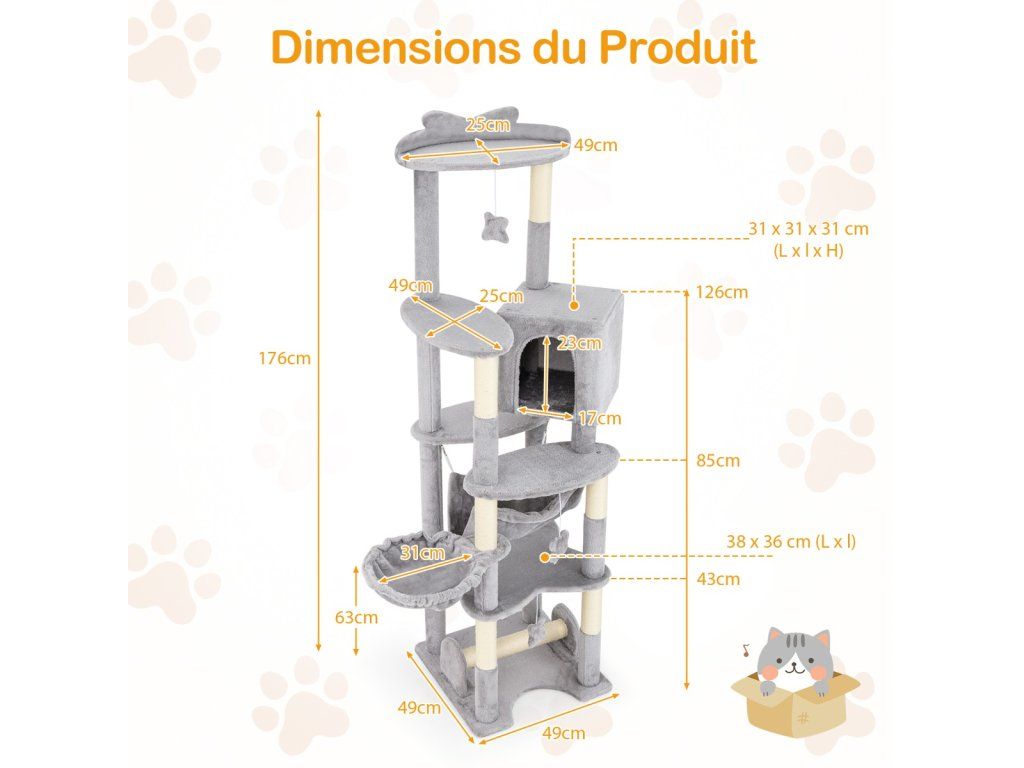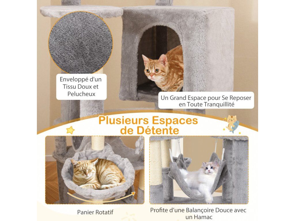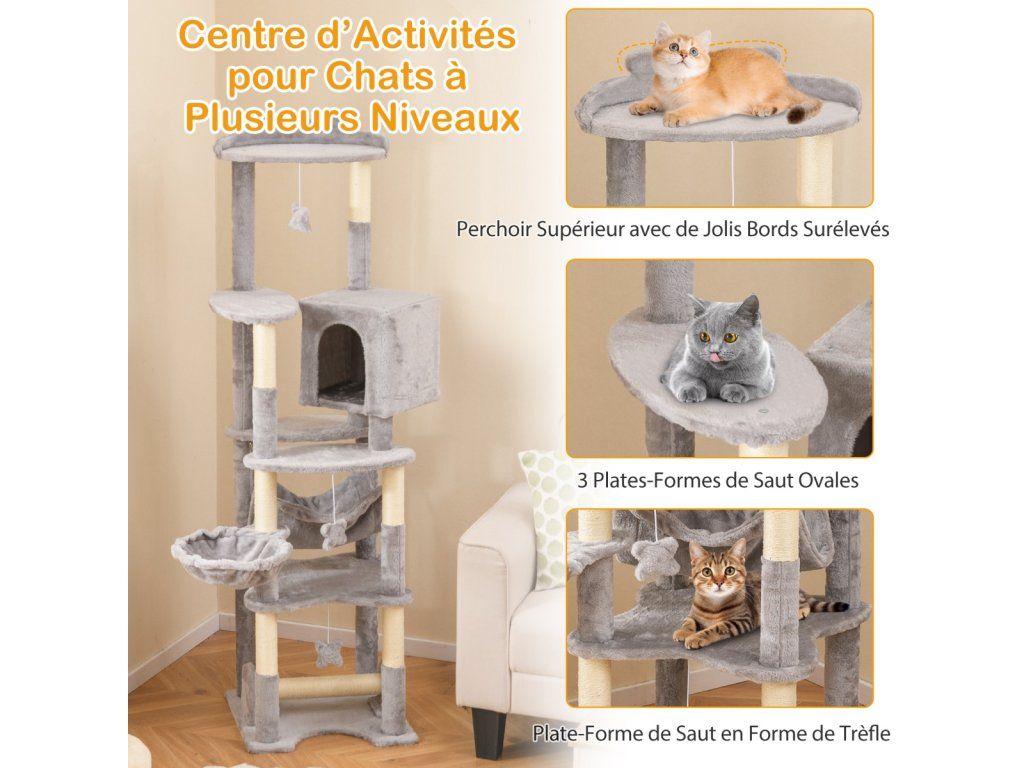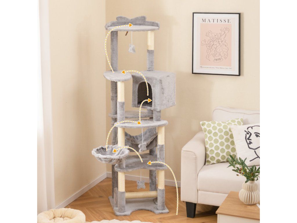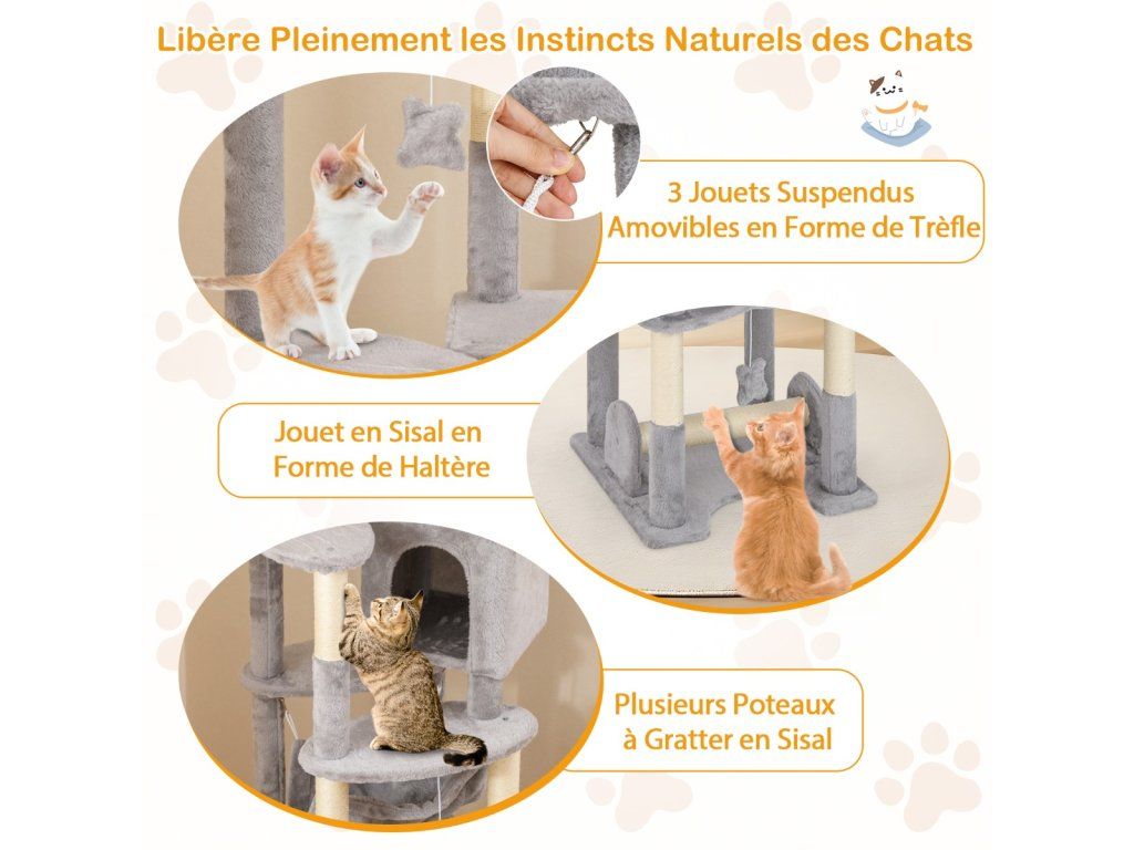 -Top perch with cute raised edges allows pets to overlook the world safely-Featuring large condo for peaceful rest-Furry friends can enjoy gentle swing with hammock-Rotatable basket bed can flexibly adapt the layout of your home-3 removable cloverleaf-shaped hanging toys satisfy cats' hunting instincts-Lever-shaped sisal toy and multiple sisal scratching posts promote healthy paw-3 oval jumping platforms and cloverleaf-shaped jumping platform allow cats to climb up and down-Large base and anti-tipping device ensure a stable construction-Wrapped with soft plush fabric to keep your felines warm and comfortable-Assembly neededBuďte první, kdo napíše příspěvek k této položce.