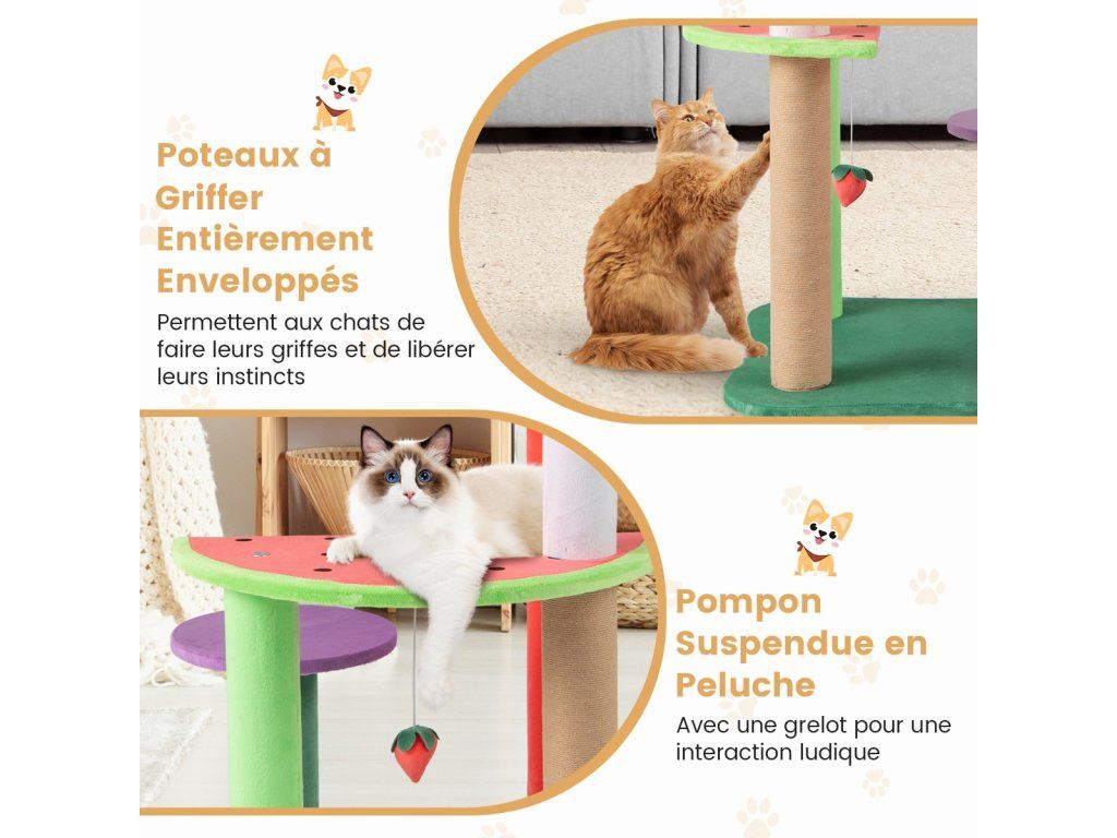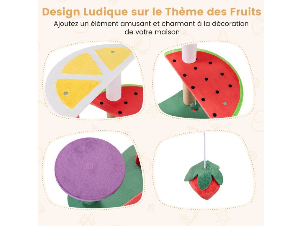 69CM Cute Cat Tree Multi-Level Cat Tower Aesthetic Fruit Shaped with Fruit-Shaped Platforms