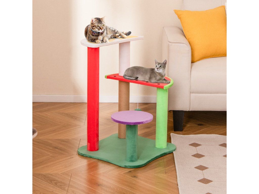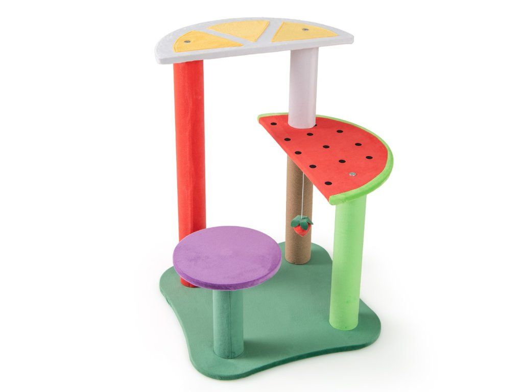 A Paradise for Your Beloved Feline Companion! Our 27 inch aesthetic fruit-shaped cat tree will not only enhance your furry friend's lounging experience, but also add a charming touch to your home decor. It is equipped with 2 semi-circle platforms and a small round platform for cats to explore, play and rest. Covered with soft plush fabric, the cat tree guarantees a luxurious feel for your cat. With its lemon, watermelon, grape and strawberry ball shapes, our cute fruit-themed cat tower will also bring a playful touch to your living space! Attributes: 【Multi-Level】This 27 inch cute cat tree has 4 levels for cats to play, relax and exercise. There is a perch at the top for observation, a large platform and a small jumping platform, providing varied spaces for your cat to enjoy and explore. 【Endless Entertainment】The cat tower is equipped with a fully wrapped scratching post, providing satisfying surfaces for cats to sharpen their claws. There is also a plush hanging ball, encouraging cats to poke, pounce and play, adding even more fun. 【Playful Fruit Shape Design】The platforms are creatively shaped into fruit shapes such as lemon, watermelon and grape, accompanied by vivid strawberry balls, adding a playful and pleasant touch to your interior decoration. 【Comfortable Material & Stable Structure】All platforms are covered with soft plush fabric, providing a warm surface to curl up on. In addition, the cat tree is supported by a wide base, ensuring a stable and reliable foundation for cats. 【Easy Assembly】The small cat tree measures 48 x 48 x 69 cm (L x W x H), making it a perfect choice for small rooms or apartments. With its simple structure and clear illustrations in the user manual, it is easy to assemble.Buďte první, kdo napíše příspěvek k této položce.