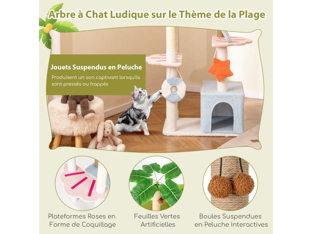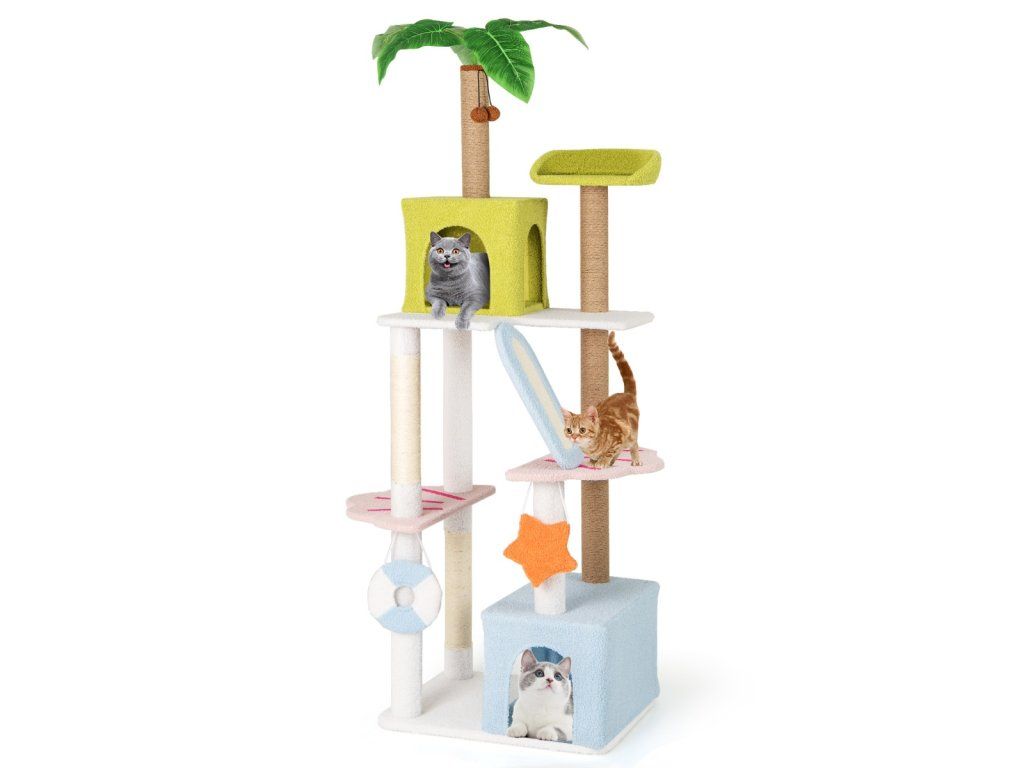 71 Inch Cat Tree Multi-Level Aesthetic Beach-Themed Kitten Tower-Colorful