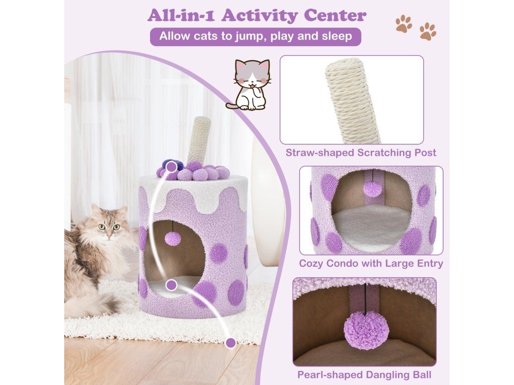 Bubble Tea Cat Tree Tower with Scratching Post-Purple