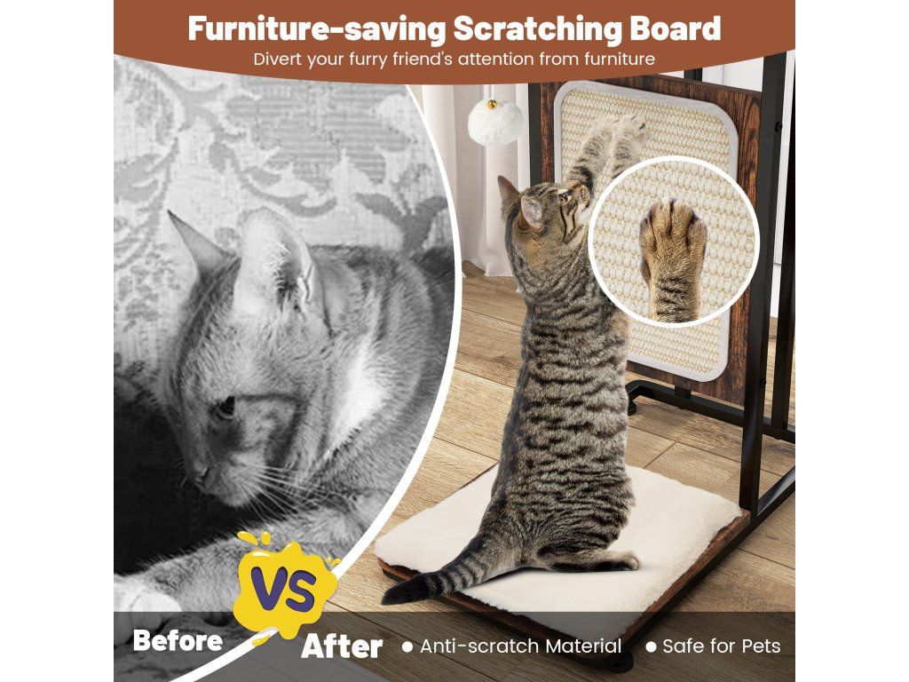 -Cat scratcher will divert your furry friend's attention from furniture -Hanging interactive toy offers endless entertainment for your kitten -Comfortable bed provides cozy spot for cats to sleep-Detachable cushion is machine washable for easy maintenance-End table keeps your daily supplies within easy reach-Scratching board is made of anti-scratch material-Crafted with thick MDF and coated metal frame for robustness and sturdiness-Safe curved corners are less prone to hurt your lovely cats-Floor-friendly foot pads avoid your floor from being scratched-Smart c-shape design saves your spaceBuďte první, kdo napíše příspěvek k této položce.