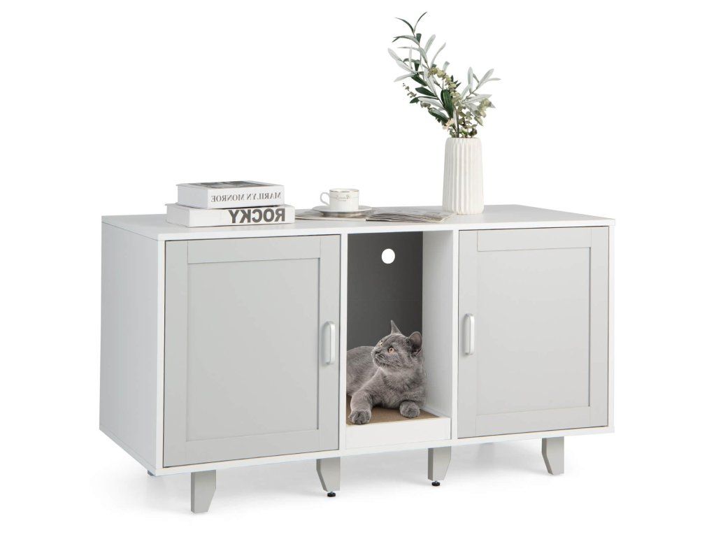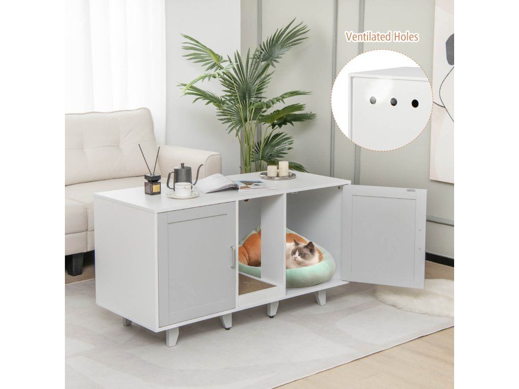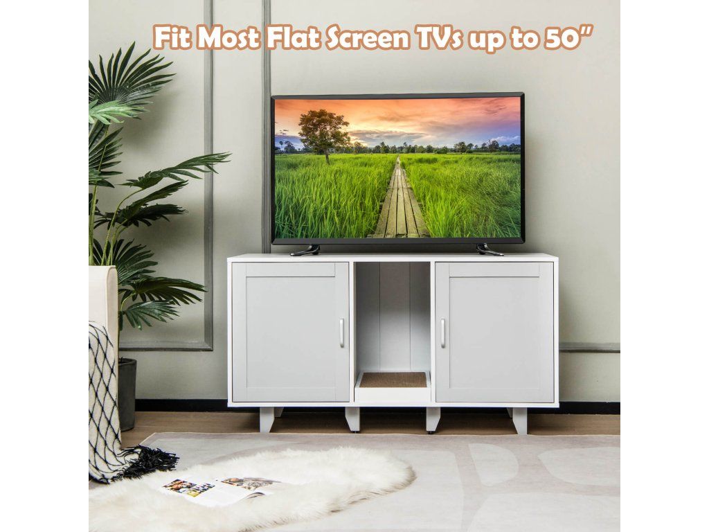 Cat Litter Box Enclosure TV Stand with Scratching Board for 2 Cats