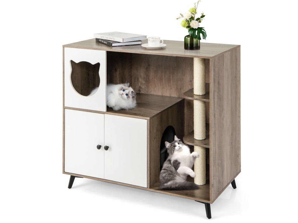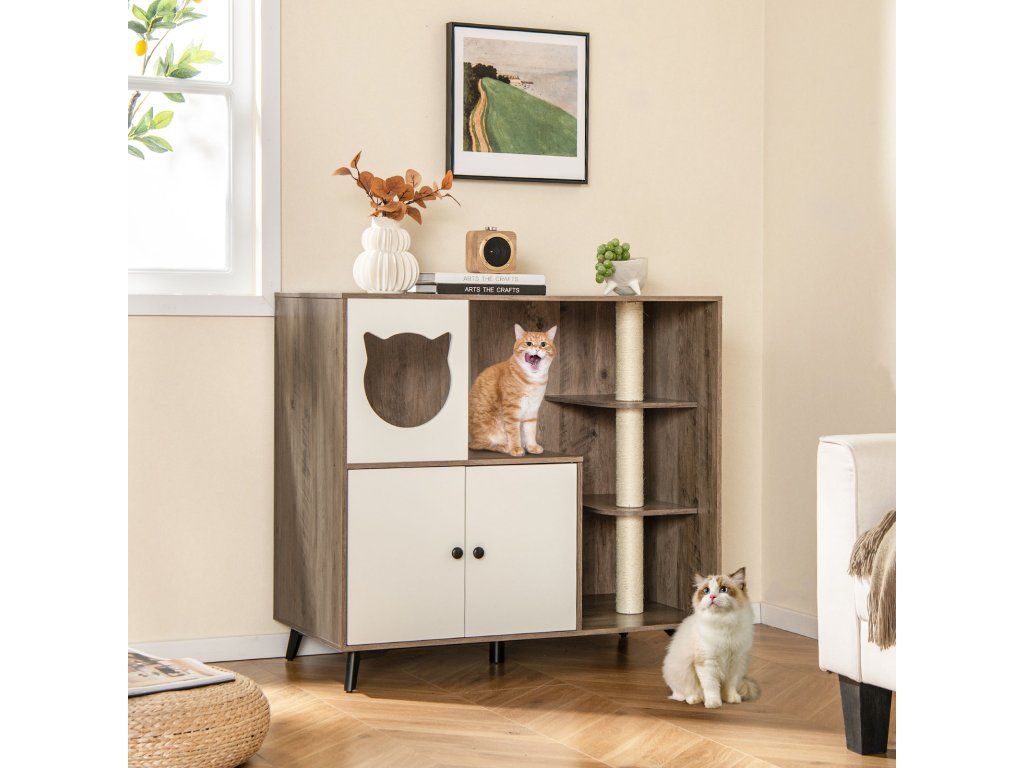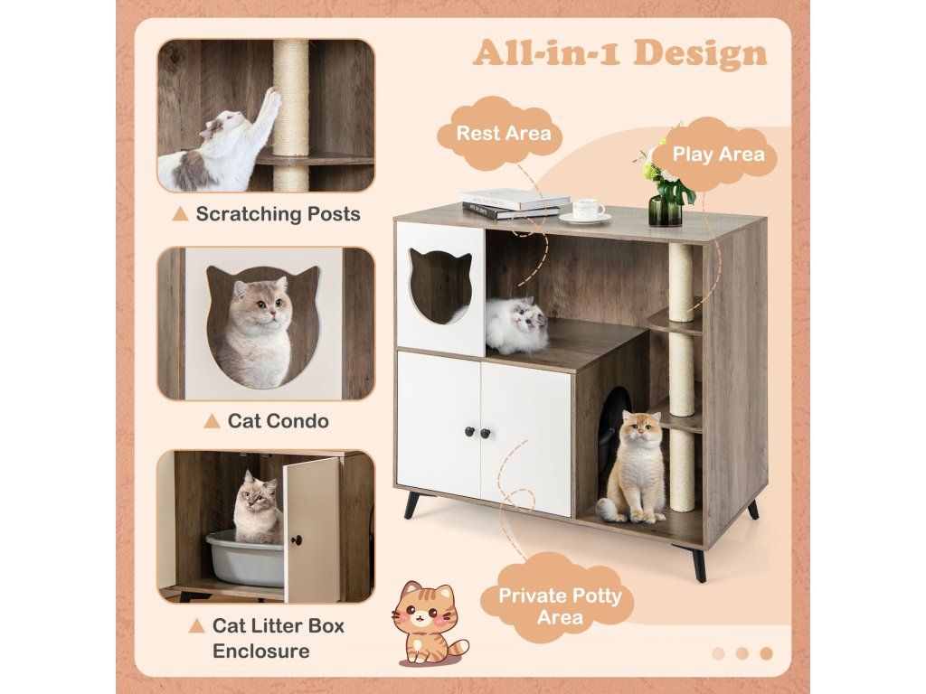 Cat Litter Box Enclosure with 3 Sisal Scratching Posts-Brown