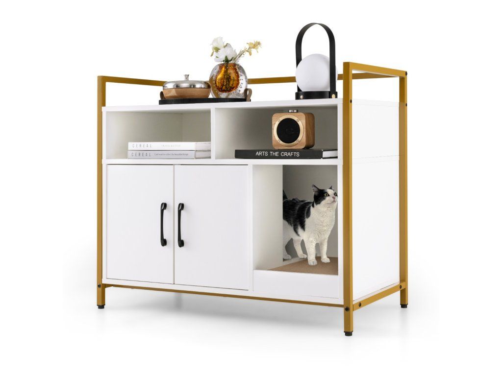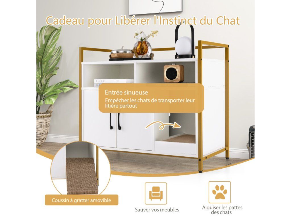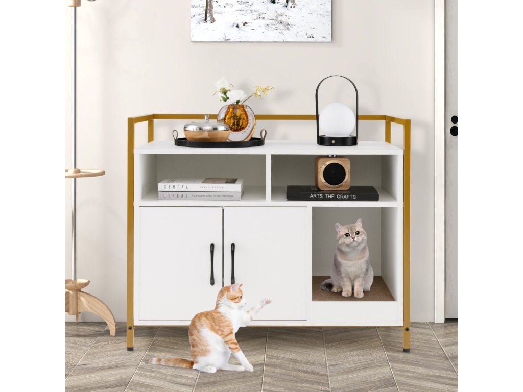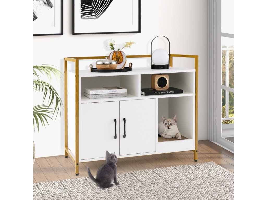 Cat Litter Box Furniture Removable Industrial Scratching Post Cat Toilet House Anti-tilt Rustproof Metal Structure 89x45x74.5cm White