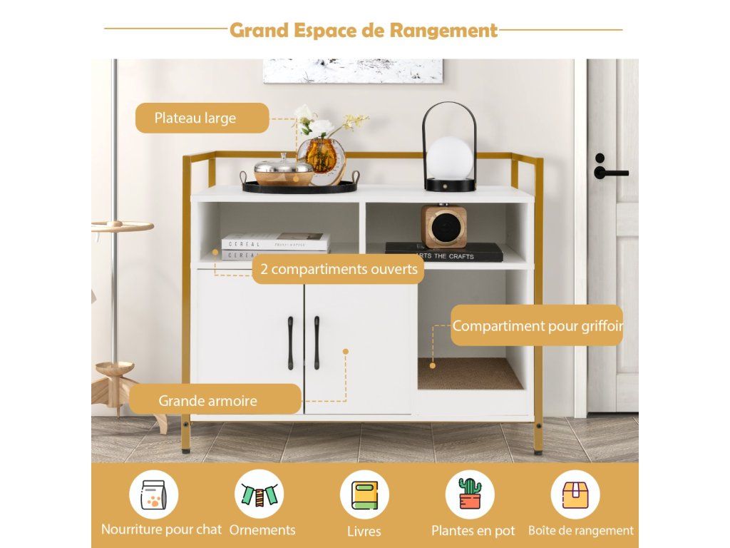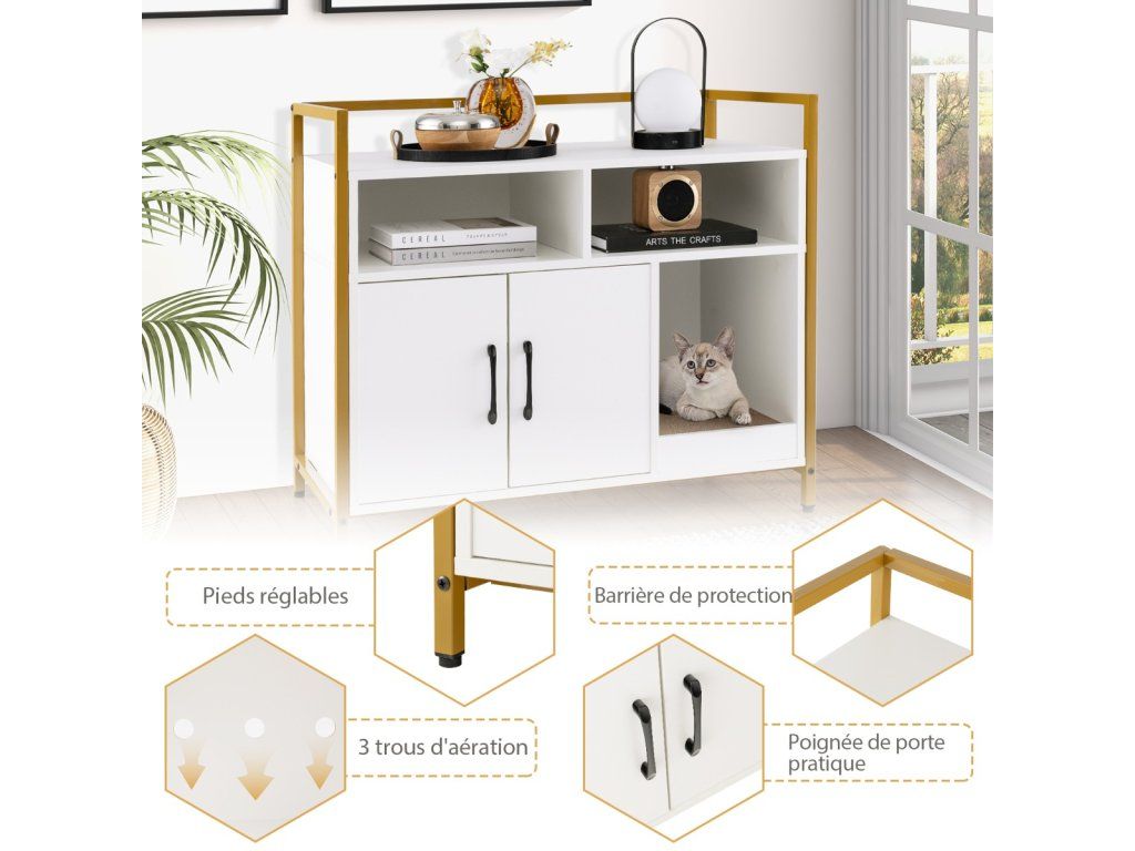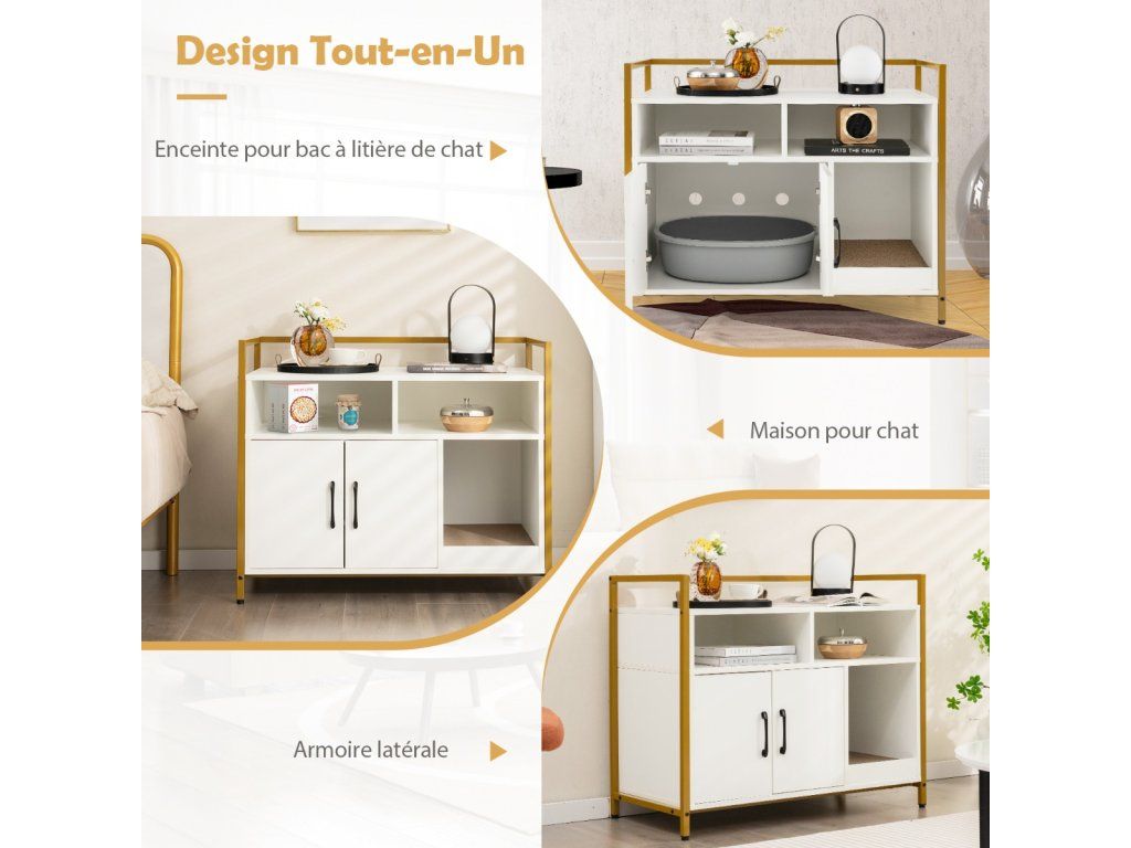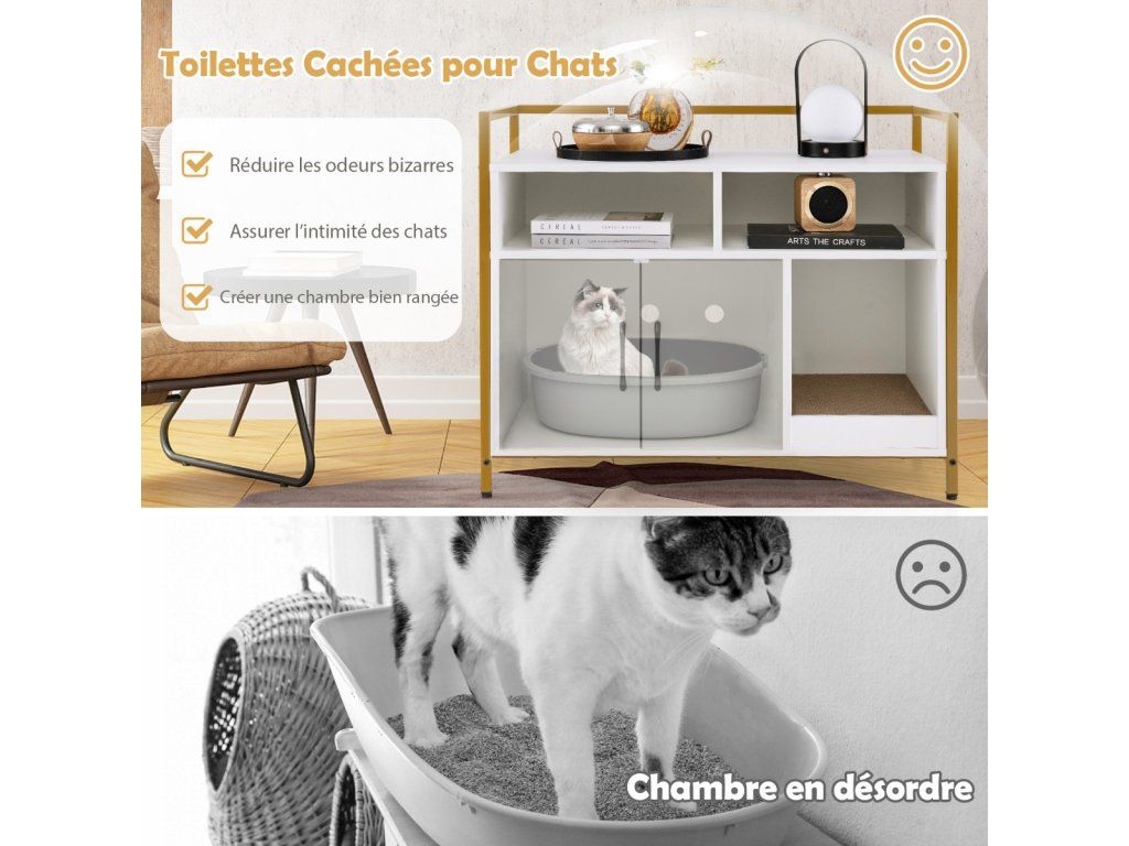 Cat Litter Box Furniture Removable Industrial Scratching Post Cat Toilet House Anti-tilt Rustproof Metal Structure 89x45x74.5cm White