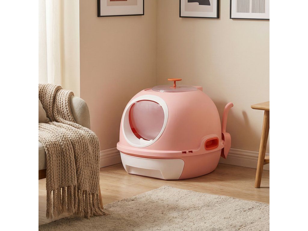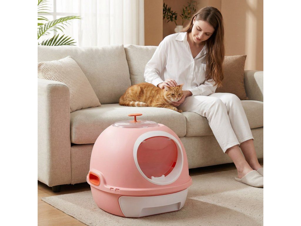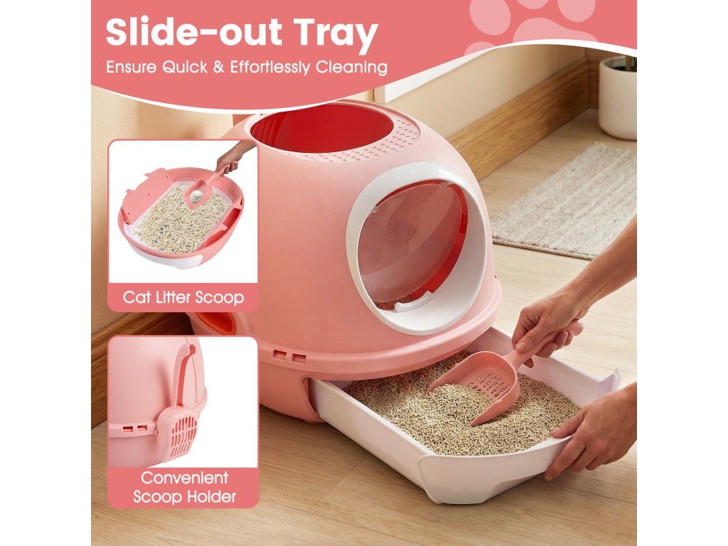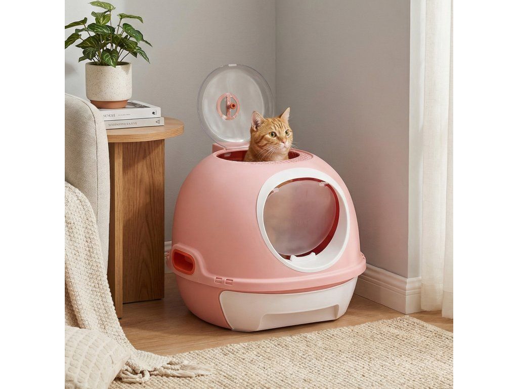 Cat Litter Box with Fully Enclosed Lid, Front Entry and Top Exit, Hinged, 10kg Load Capacity, Pink