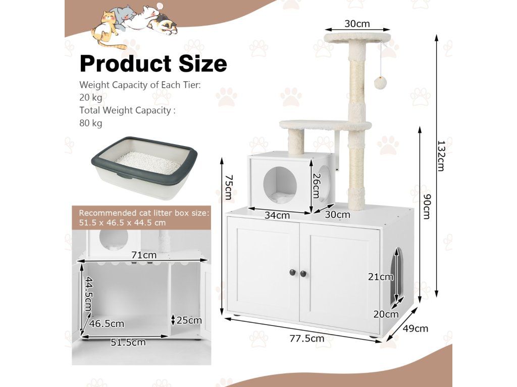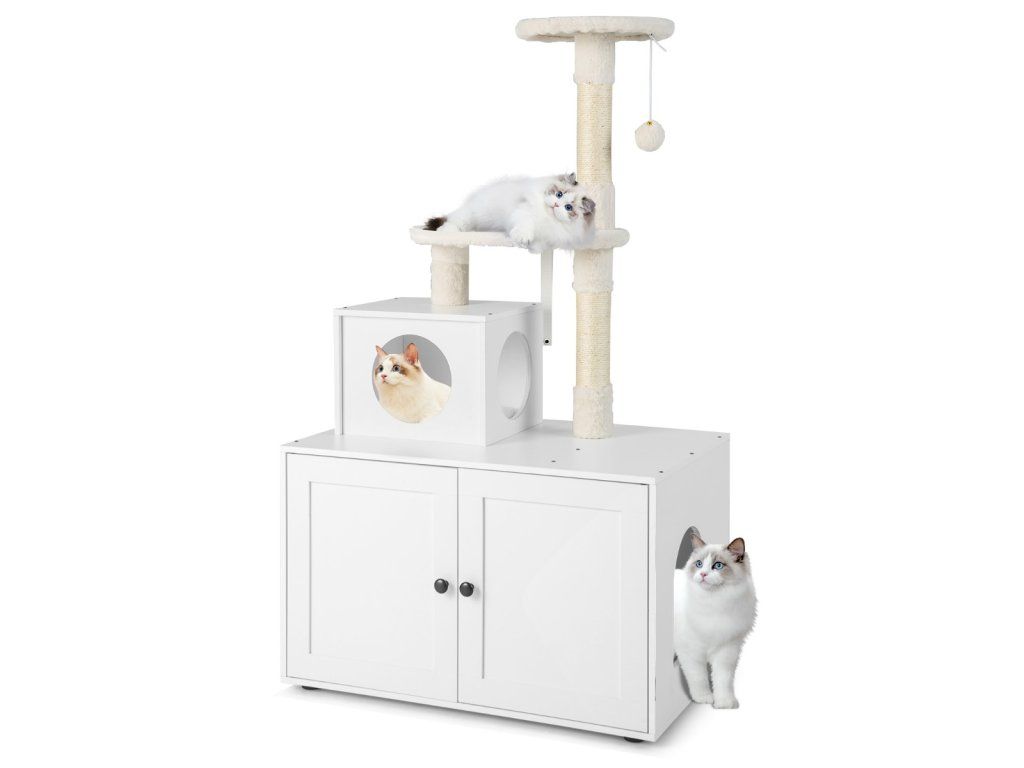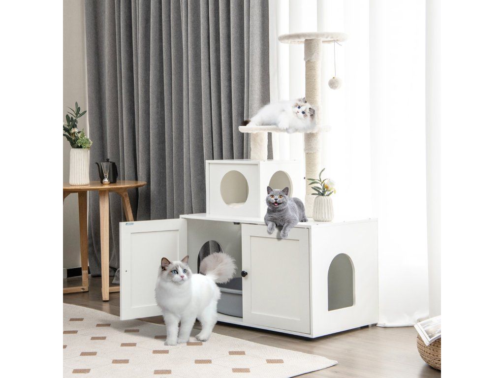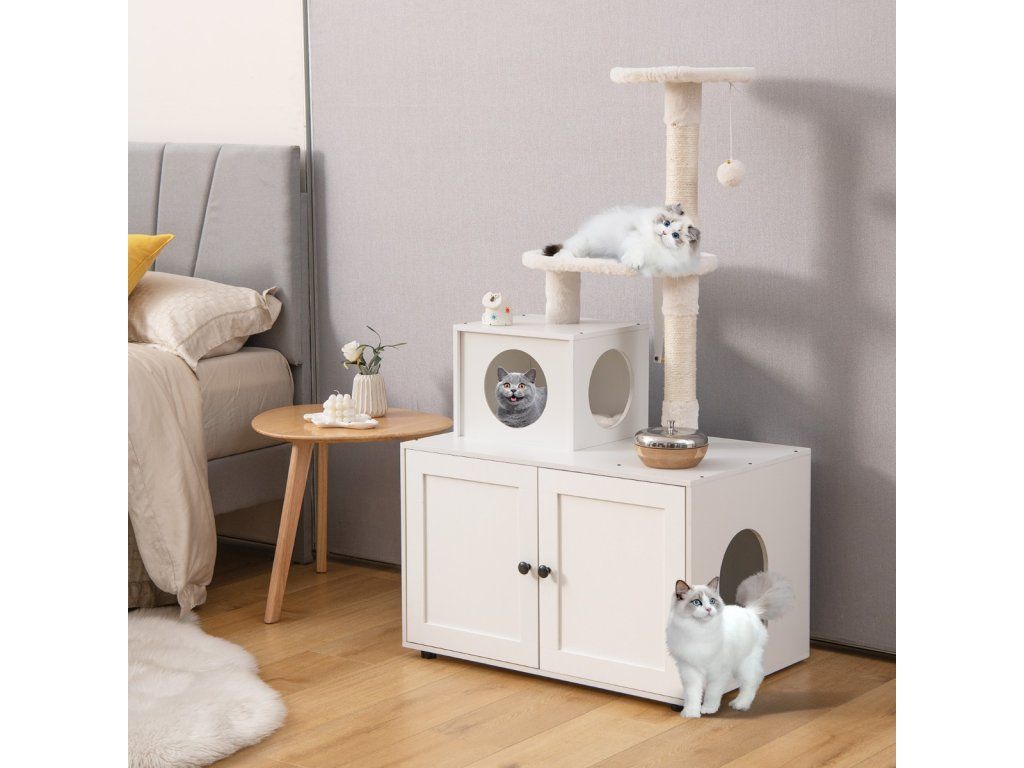 Cat Tree with Litter Box Enclosure with Cat Condo-White