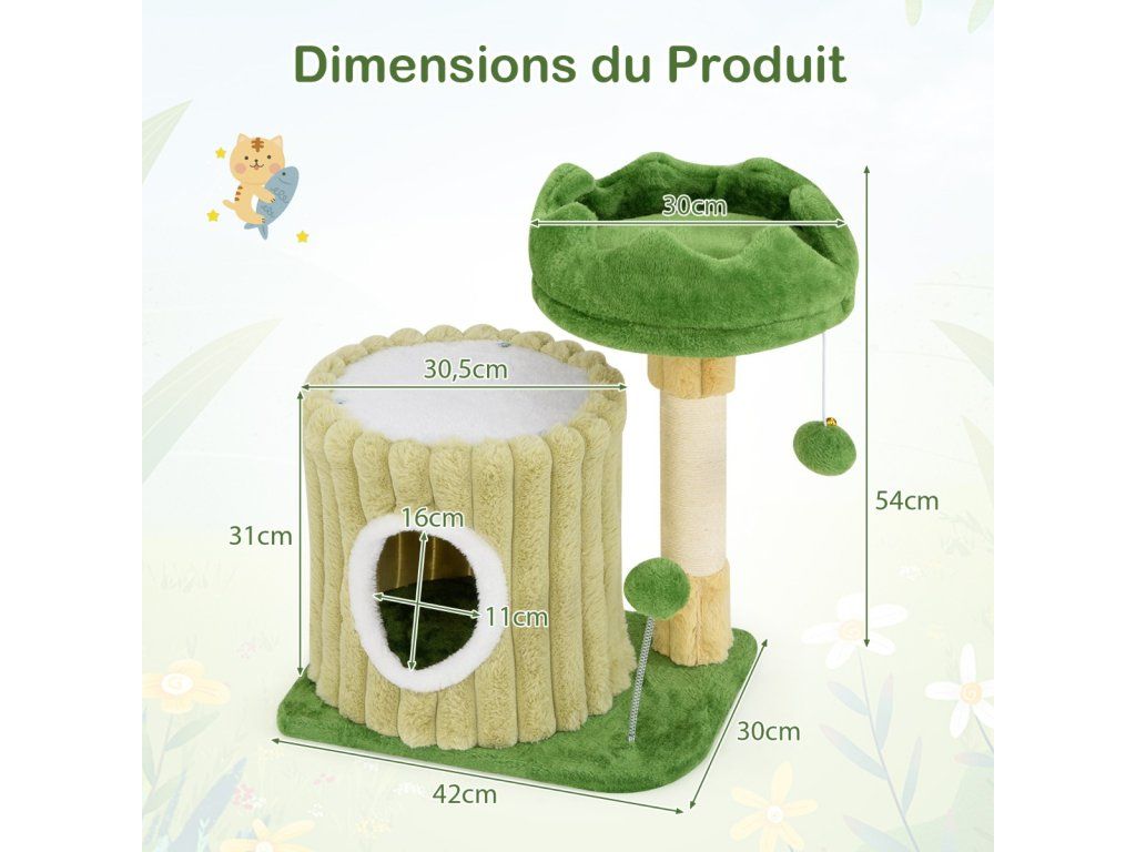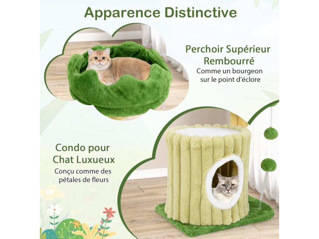 -All-in-one design allows felines to observe, jump and sleep-Padded top perch likes a bud on the verge of blossoming-Luxurious cat condo is designed like flower petals -Well-crafted scratching posts can keep cats' claws healthy and keep your furniture safe-Spring toy with swing motion keeps your active felines engaged-Cute hanging pompom with bell will satisfy cats' hunting instincts-Covered with soft & warm plush fabric for enhanced comfort-Fits limited corners perfectly with the compact yet versatile design-Simple assembly saves your time and effortBuďte první, kdo napíše příspěvek k této položce.