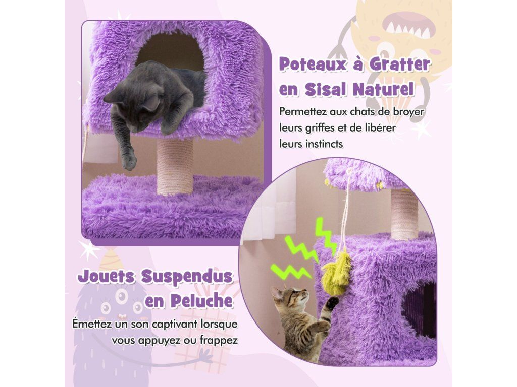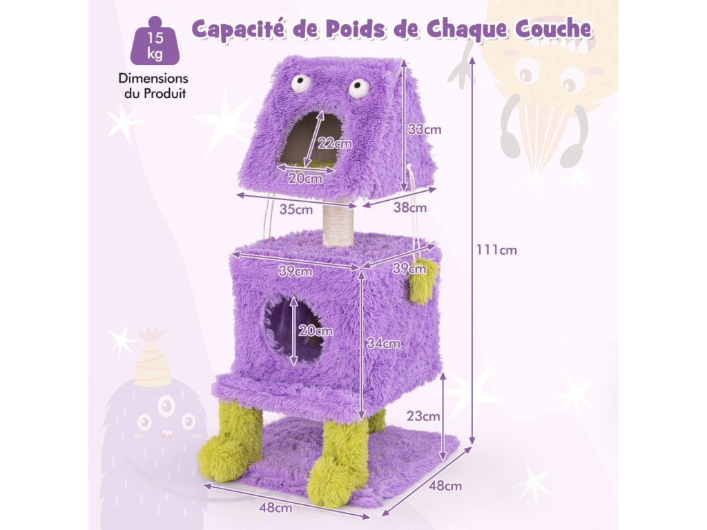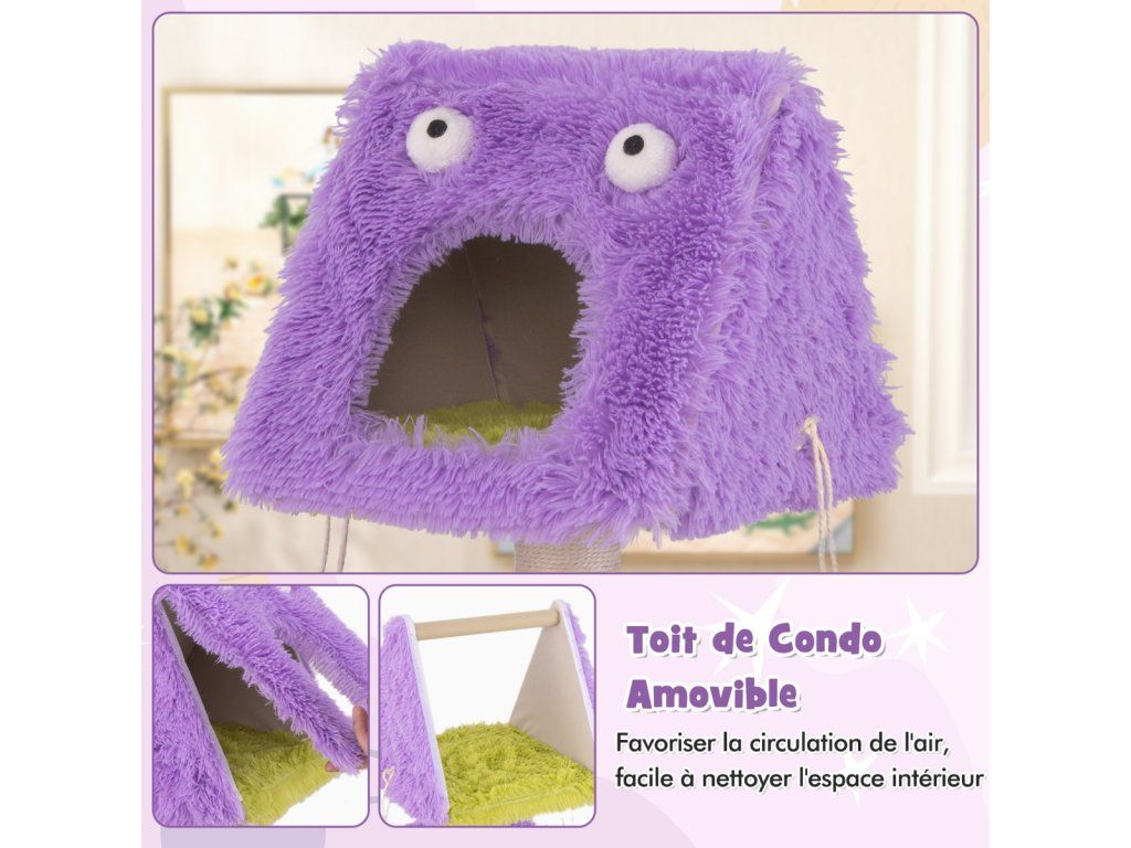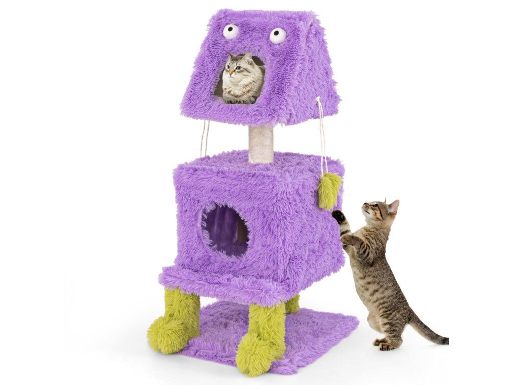 Cute Monster-Themed Cat Tower with 2 Private Condos and Soft Long Plush-Purple