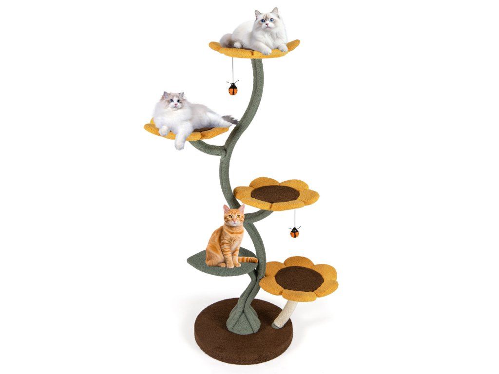 Multi-layer Cat Tower Sunflower Style Cat Tree with 4 Flower-shaped Platforms-Yellow