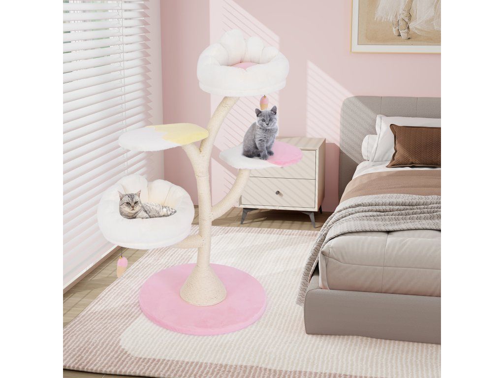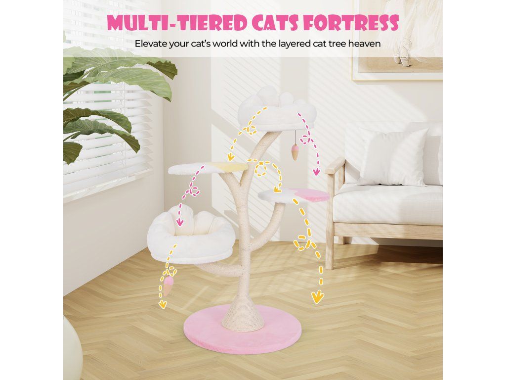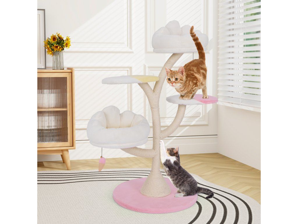 Multi-Layer Cat Tree Cat Tower with 2 Cat Perches 2 Platforms-Pink