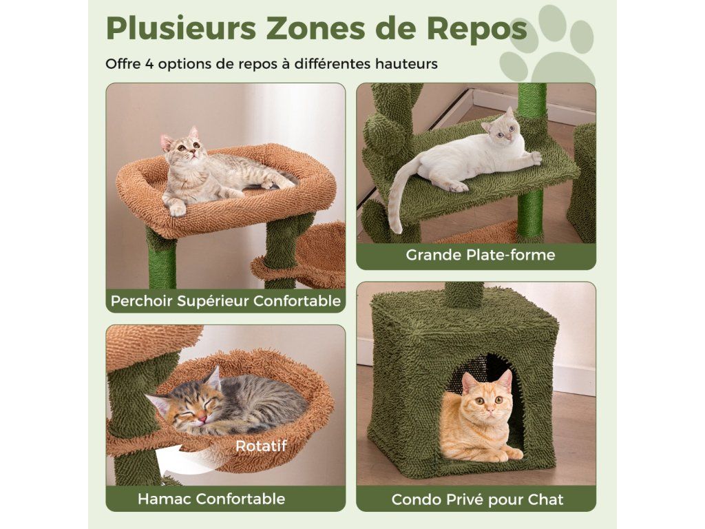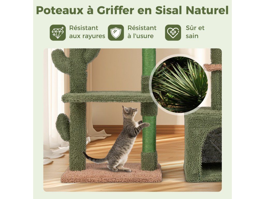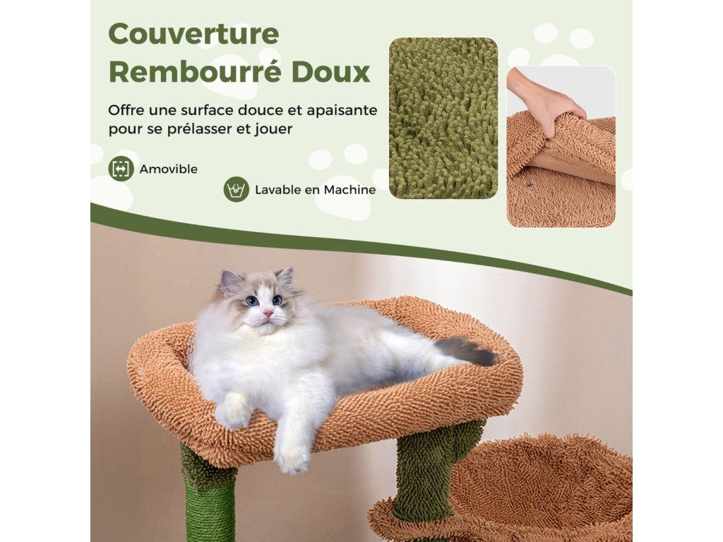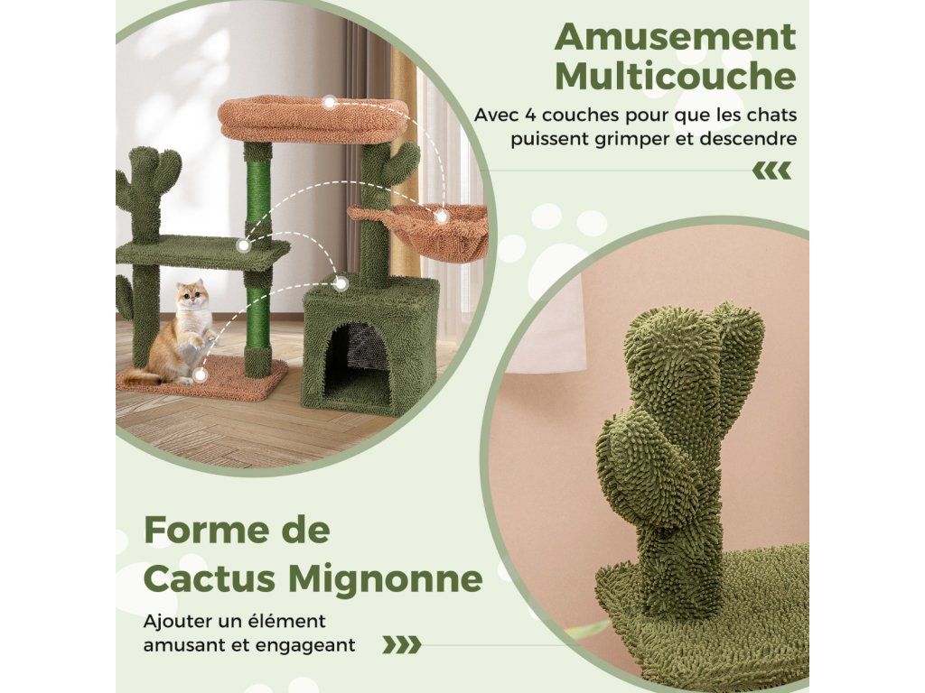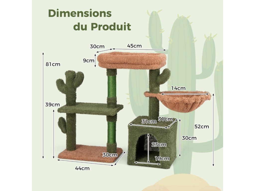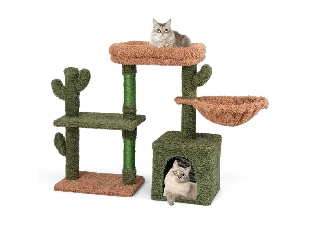 Scratching post cactus cat tree with platforms hammock cat cave green+brown (81cm high)