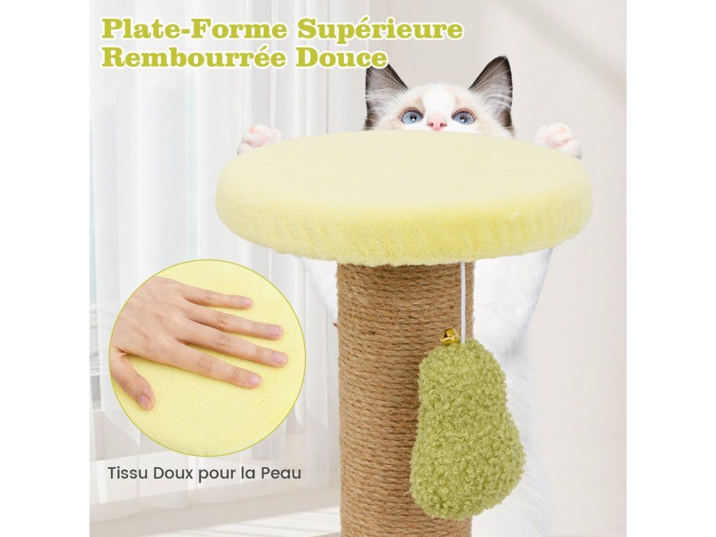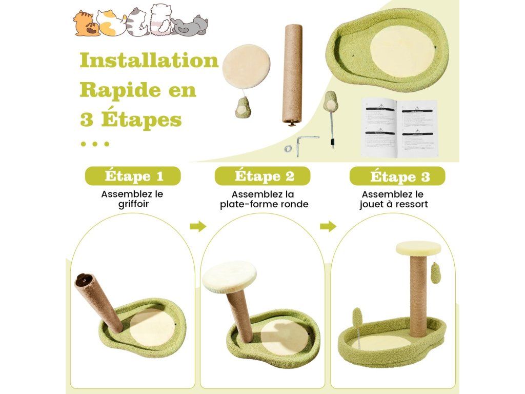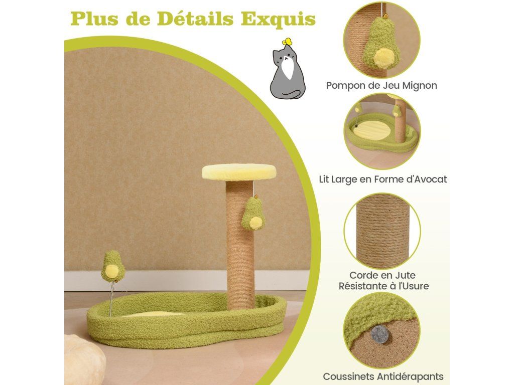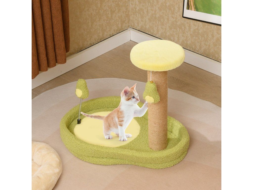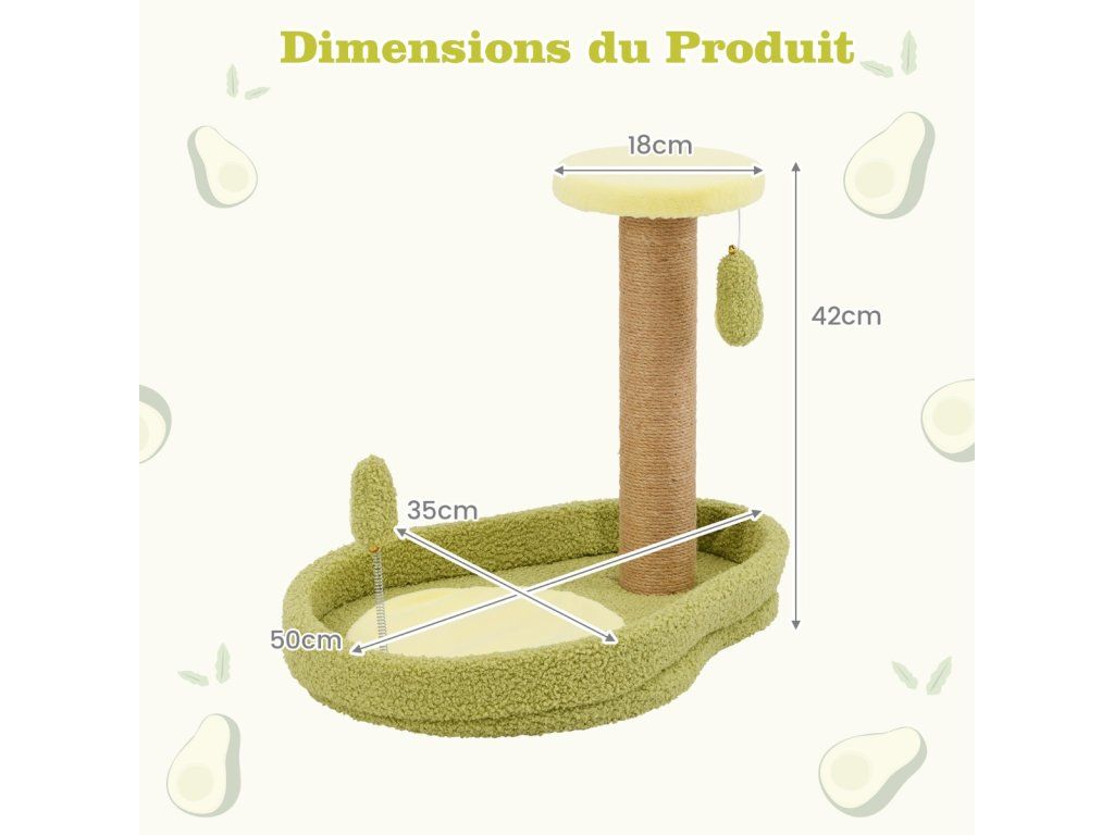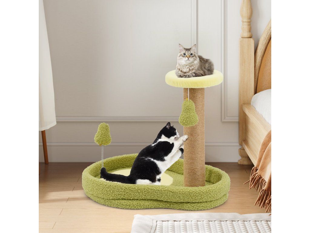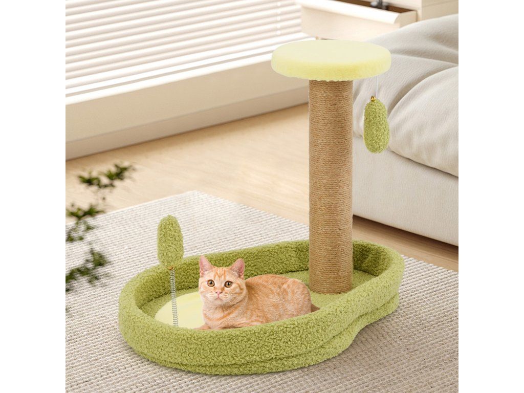 Our cat tree features a generously padded top platform, perfect for your cat to rest and relax after scratching. To satisfy your cat's natural scratching instinct, the scratching post is wrapped with high-quality jute rope, which promotes healthy and sharp claws. Assembly is a breeze thanks to our 3-step assembly process. Simply put the scratching post, round platform and feather toy together, and it's ready. Our scratching post provides your cat with a comfortable and stylish scratching and playing option that they will love! Attributes : Comfortable Round Top: The top platform of this cat tree is generously padded to ensure your cat's comfort. The soft, skin-friendly fabric is gentle on your cat's paws and makes it a favorite place to rest and relax after a good scratching. Release Cat's Scratching Instinct: This cat tree is designed to satisfy your cat's natural scratching instinct. With high-quality jute scratching posts, your cat's claws will stay healthy and sharp. Plus, the avocado feather toy adds even more fun. Stylish Appearance & Stable Construction: With its wide, avocado-shaped bed, this cat tree has a chic look that will appeal to your cat. It adds elegance to your home, while the wide base with non-slip pads ensures excellent stability when playing. Quick Assembly in 3 Steps: This small cat tree is designed for easy assembly. In just 3 simple steps, you can have it ready for your cat in no time. You only need to assemble the scratching post, round platform and feather toy. Space-saving design: This cat tree is compact and functional, perfect for homes with limited space. Measuring 50 x 35 x 42 cm (L x W x H), this cat climbing frame offers your cat a variety of activities in a smaller space. Characteristics: Easy installation in just 3 steps Scratching posts are wrapped with durable jute rope for long-lasting use Padded upper platform for comfortable living Includes avocado feather toy for extra fun Wide, stable base with non-slip pads for safe use Space-saving design for small rooms Skin-friendly, soft fabric for your cat's comfort Modern, stylish look that suits different living stylesBuďte první, kdo napíše příspěvek k této položce.