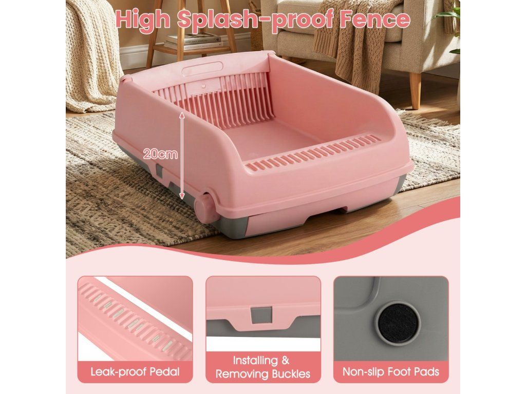 Semi-automatic cat litter box with open lid, splash-proof cat toilet, pink