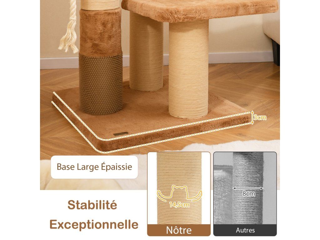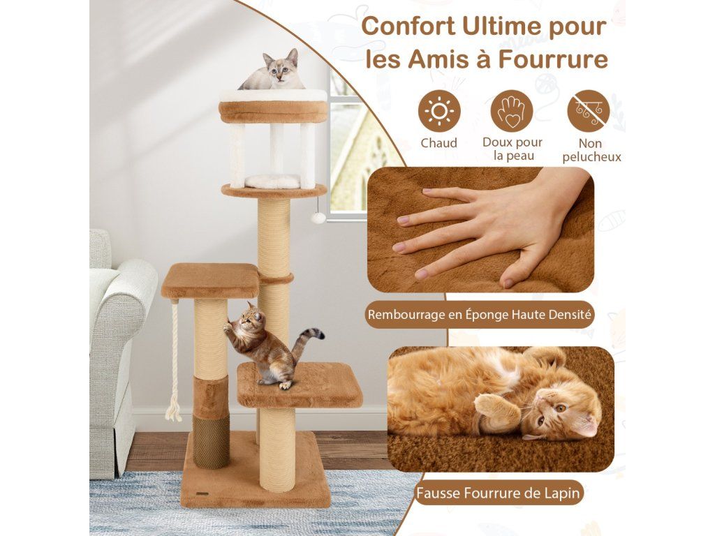 Škrabadlo ve výšce 166 cm potažené umělou králičí srstí kombinuje luxusní vzhled s promyšlenou funkcionalitou - každý detail je navržen pro maximální pohodlí kočky a snadnou každodenní údržbu.