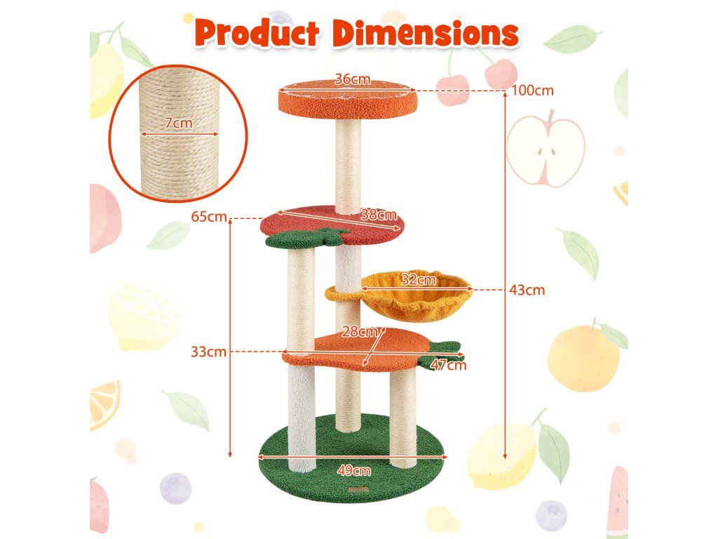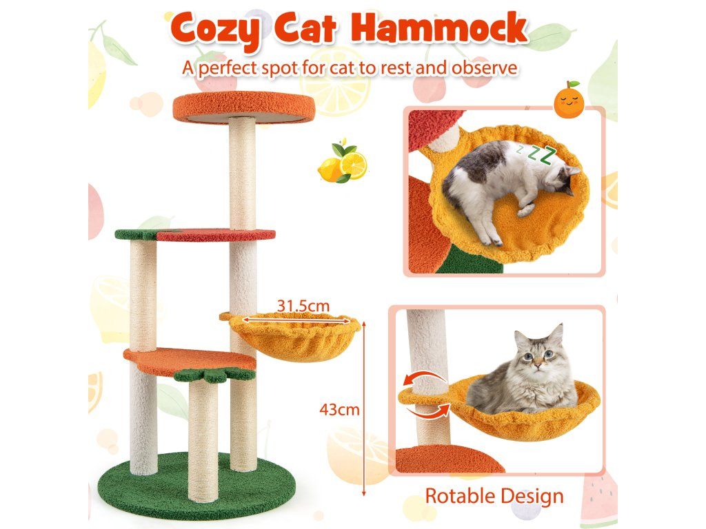 Small Cat Tree Cute Fruit Theme 100 cm Cat Tree with Rotating Basket Sisal Scratching Posts