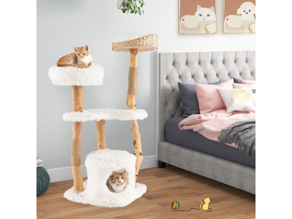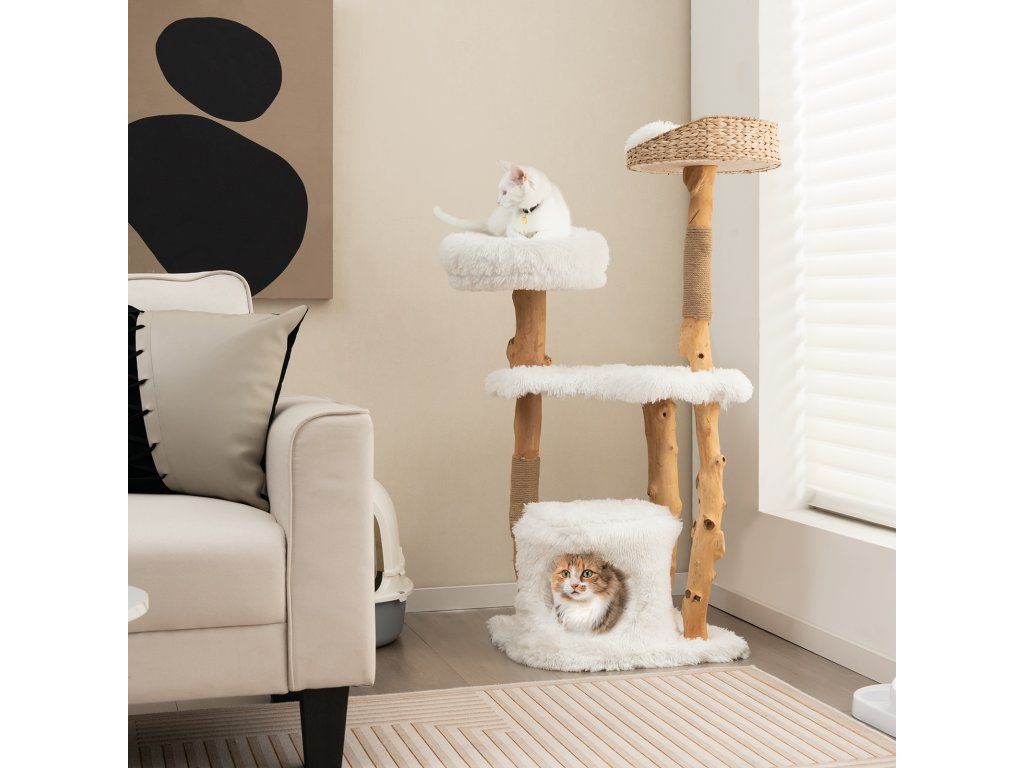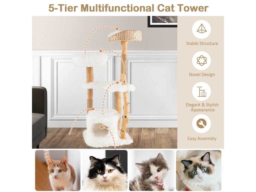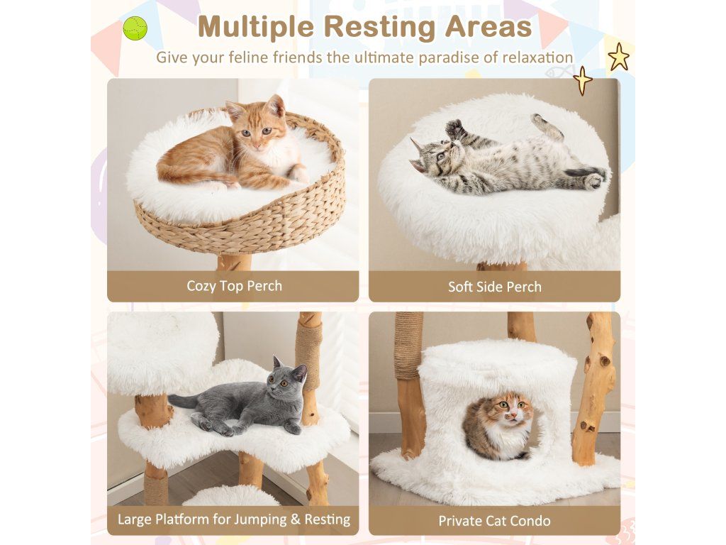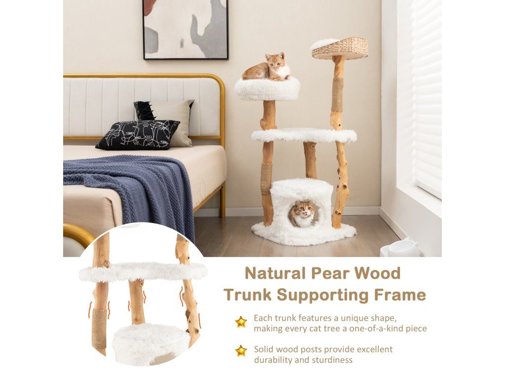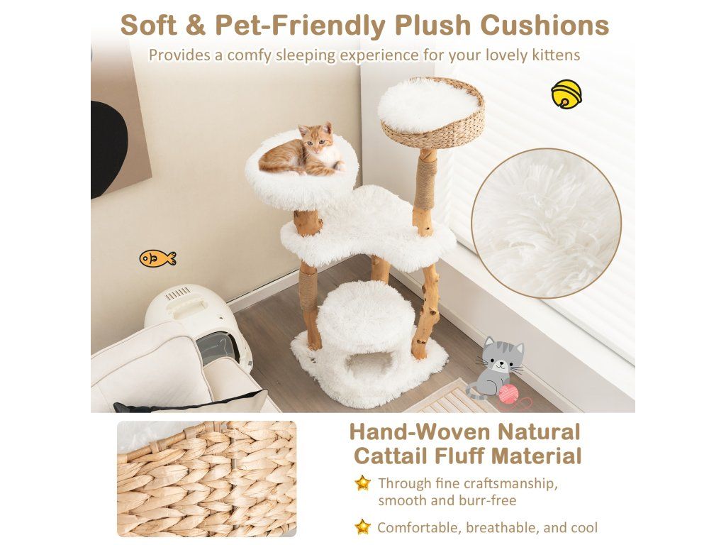 -Top perch made of hand-woven cattail basket for durable use-Middle large platform for your cat to jump, play or take a nap -Spacious condo at the bottom offers a cozy private resting space-Anti-wear jute rope scratching posts satisfy cats' instinct needs -Made of natural and solid pear wood trunks for long-term use-Soft and warm plush cushions are designed for more comfort-Square base wrapped in soft fabric offers stability and comfort-Removable and washable cushions are easy to keep clean-Elegant appearance adds charm to your homeBuďte první, kdo napíše příspěvek k této položce.